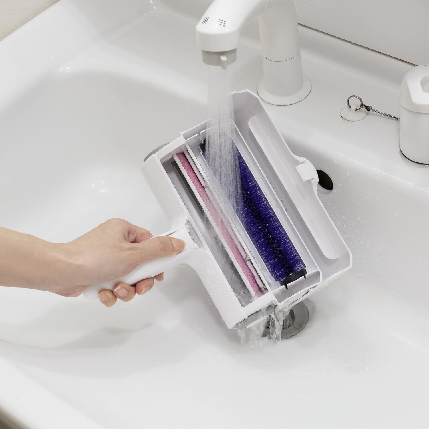 【替え芯不要で繰り返し使える】粘着式と違い、スペアテープ(ローラー)が不要のため経済的なエコ商品です。ごみを絡めとり、ごみが自動的に本体内に収納されるため、蓋を開けて簡単に捨てることができます。粘着式のようにテープをはがすストレスもありません。中のごみはハンディタイプ・先の細い掃除機で吸い取れます。