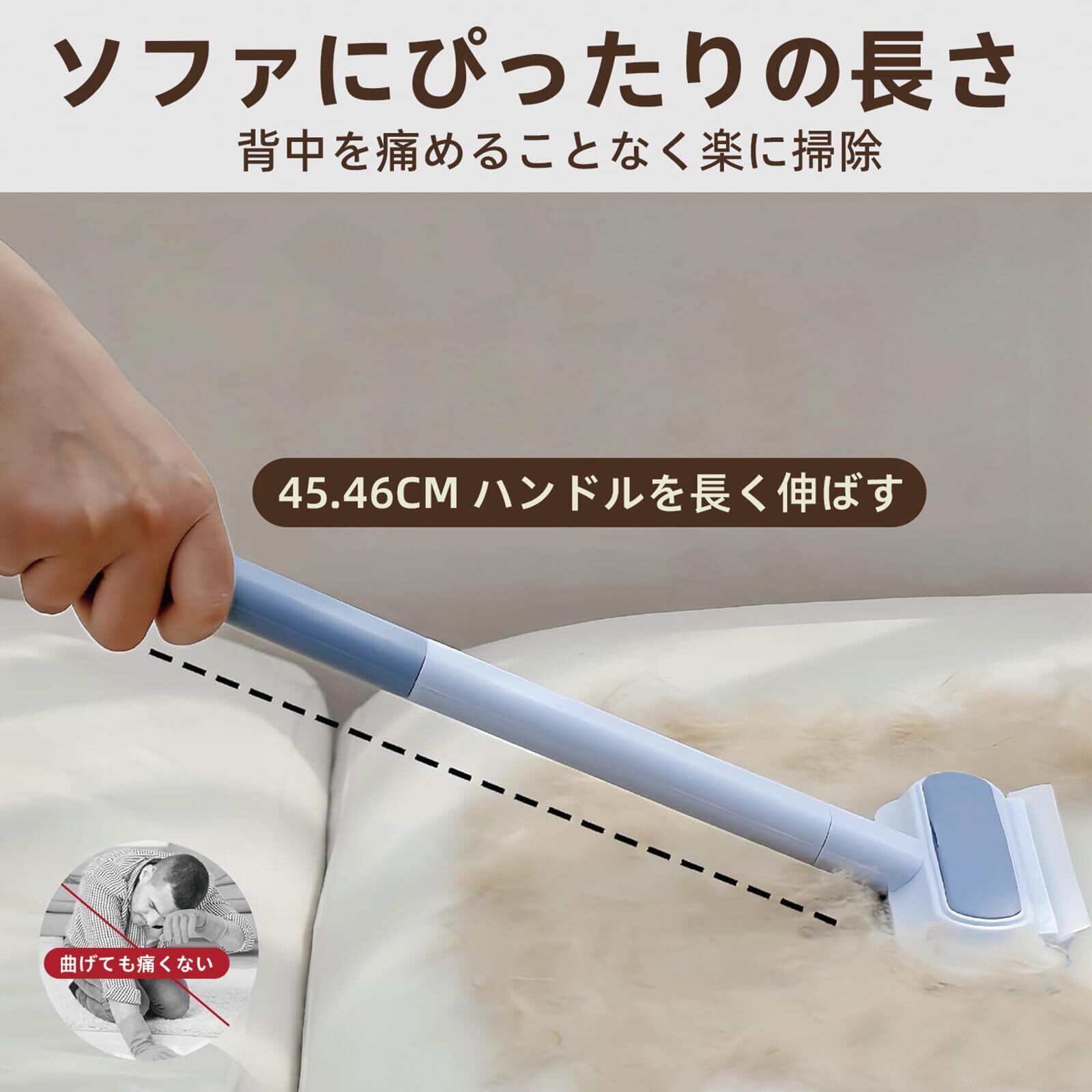 長さ調節可能なハンドル - 猫 毛取り 握りやすさを高めた触り心地の良いABS製ハンドルを採用します。ハンドルは2段組み合わせ可能のため、必要に応じてハンドルを外したり組み合わせたりして長さを調節できます