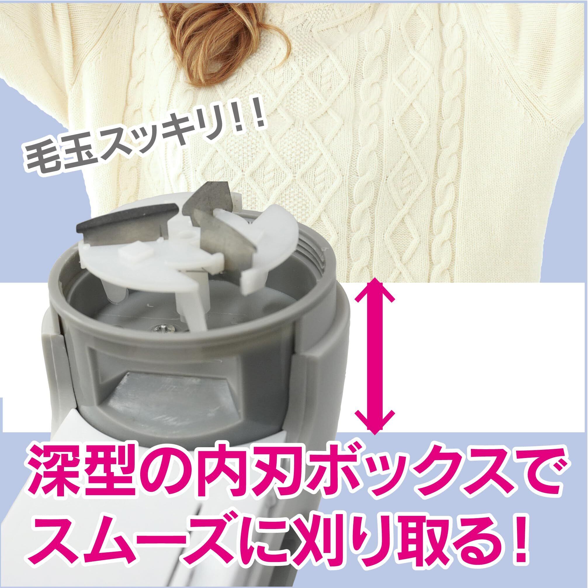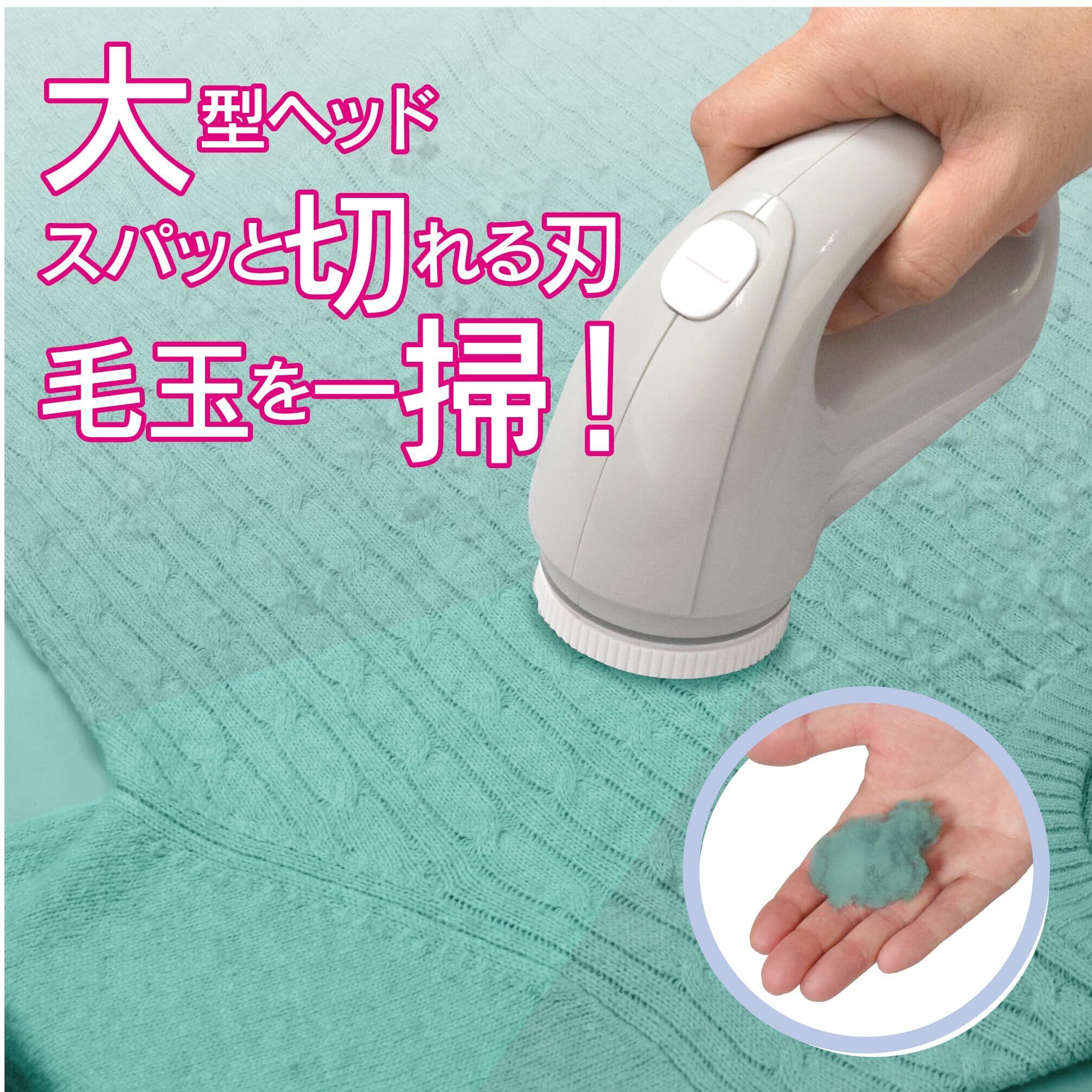 【おおきめヘッドで毛玉をぐんぐん刈り取る】セーターやスウェット等の衣類や毛布等の手入れに適した目詰まりしにくい毛玉取りです。大きめの切れ味の良いヘッドで楽に毛玉が取れます。