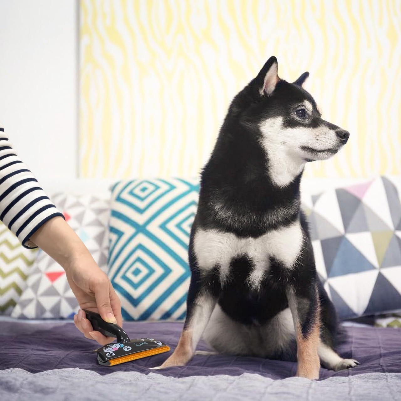 日本シール 直販 エチケットブラシ de ちょこっと掃除 繰り返し使える 抜け毛取り キャットタワーやペットペットの隙間掃除 手のひらサイズで持ち運び簡単 ほこり取り 犬 猫 雑貨 お掃除用品 クリーナー (Luke(黒柴))
