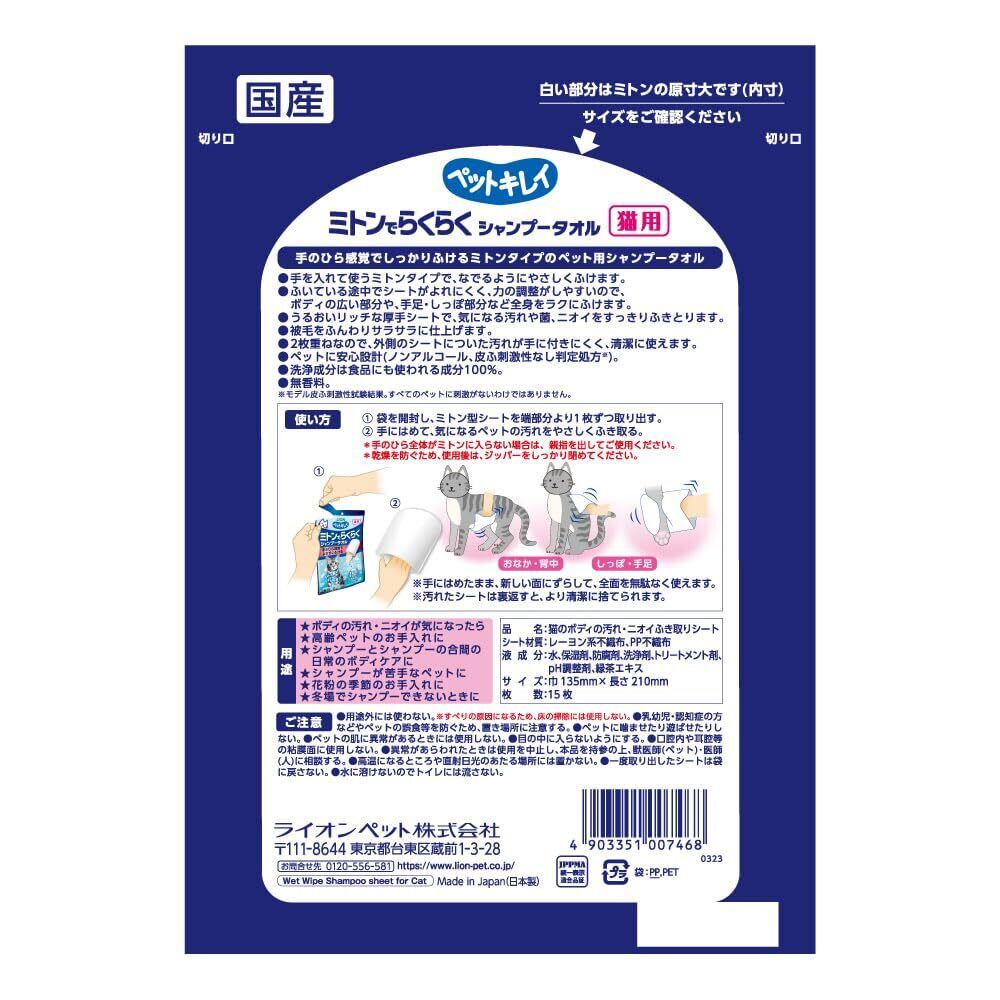 ペットキレイ ミトンでらくらくシャンプータオル 3個パック 猫用 ライオンペット