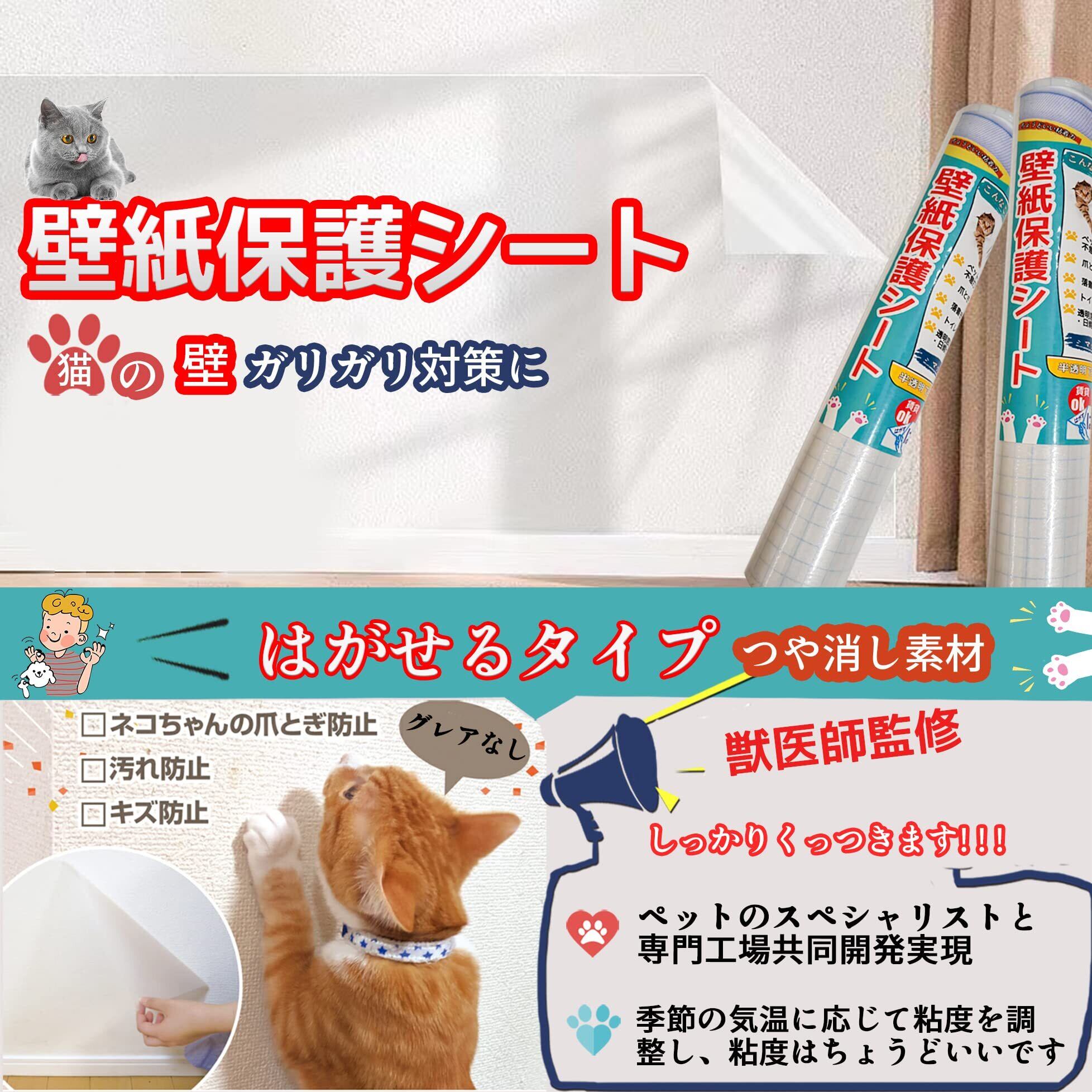 BOOMAGU 【獣医師監修】はがせる 猫 壁紙保護シート 半透明 猫 つめとぎ 防止 シート 貼りやすい 爪研ぎ防止シート 使いやすい 目立ちにくい汚れ防止 猫ひっかき防止 (60CM*5M)