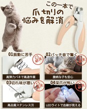 【安全性確保!血管が見えるLEDライト!】獣医師監修LEDライト付き猫爪切りはライトで爪を透かし、爪先の神経と血管がひと目で確認できるので、血管を避けて安全な爪切りができ、ペットも爪切りに怖い思い出を残しません。ポタン電池が内蔵し、約六時間使え続けます。猫の爪切りは1か月に1回とすれば、内蔵電池は最大6年ほど使用可能です。