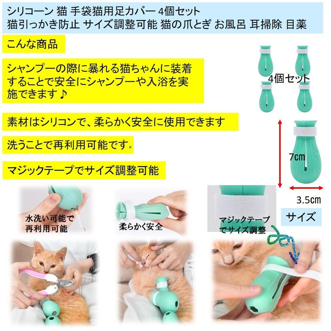 シリコン 猫 爪 手袋 猫用足カバー 猫靴 4個セッ販売 ! お風呂 耳掃除 目薬 ねこ つめ 保護 ガード 猫引っかき防止 にお使いください