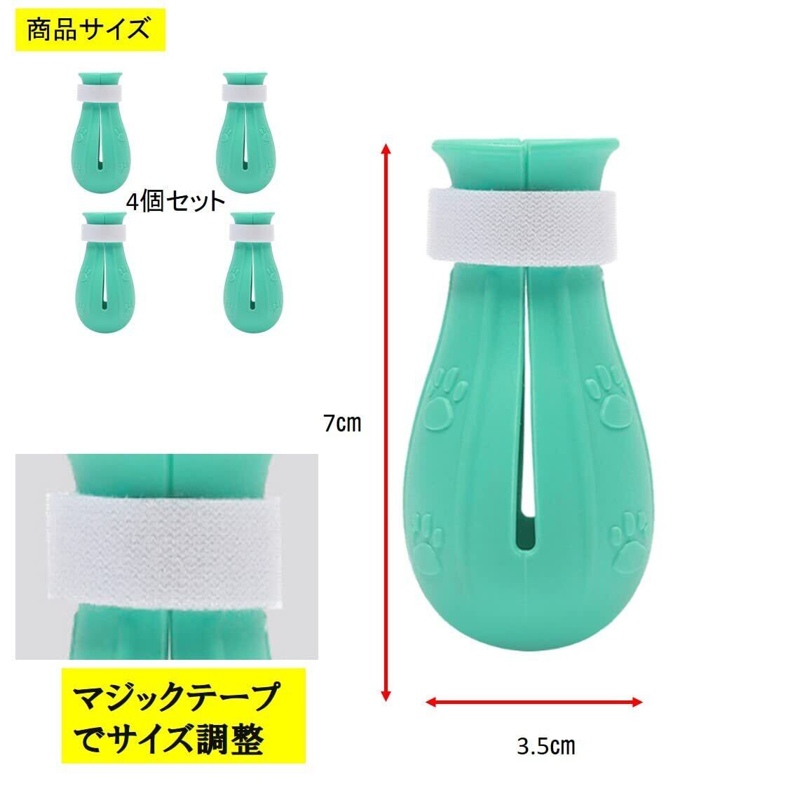 ・【商品内容】 猫用足カバー4個セット 【サイズ】 7×3.5cm 【カラー】 グリーン 【材質】 シリコン