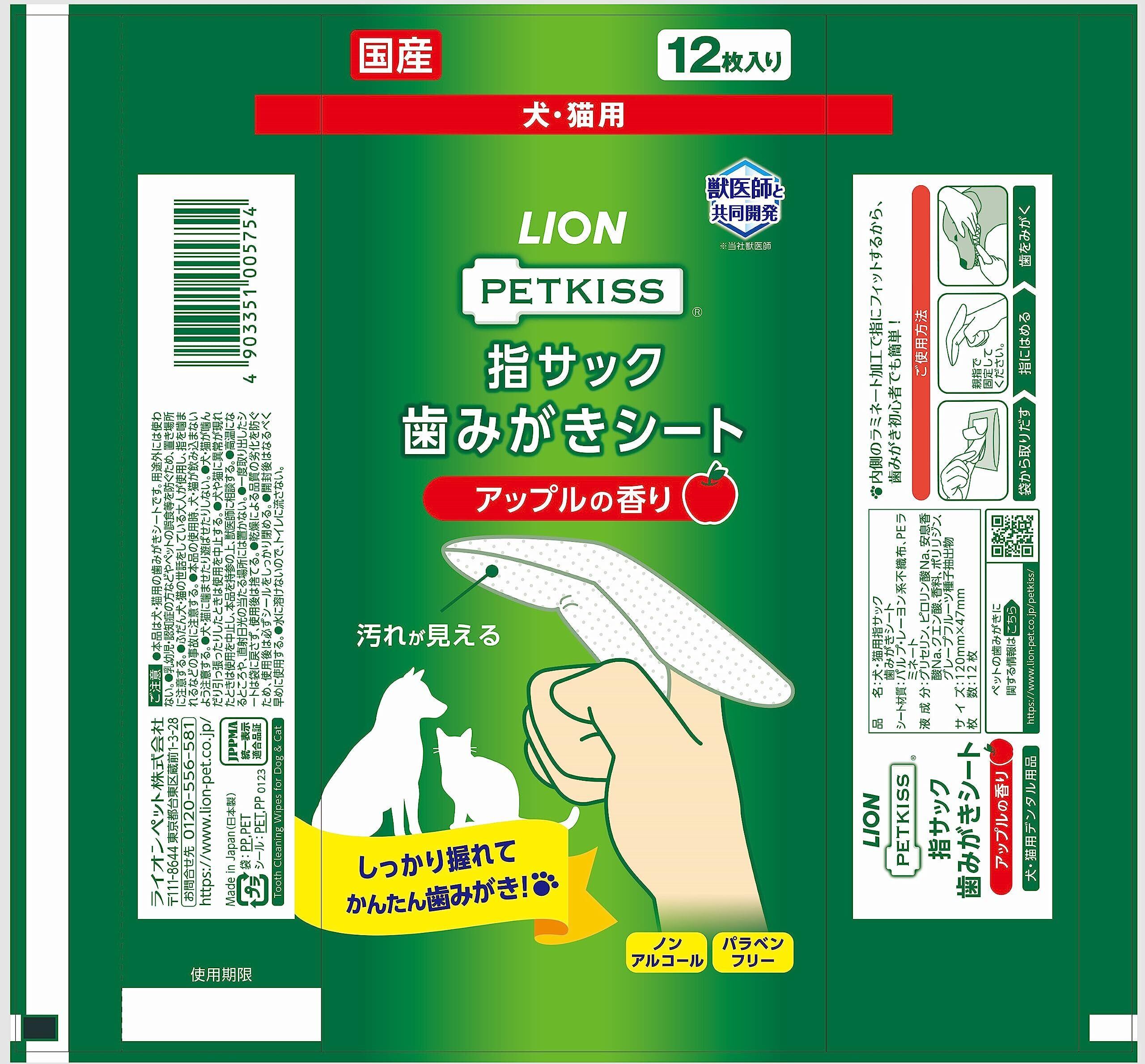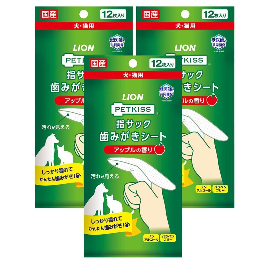 ライオン ペットキッス PETKISS 指サック歯みがきシート アップルの香り 3個パック まとめ買い LIONPET