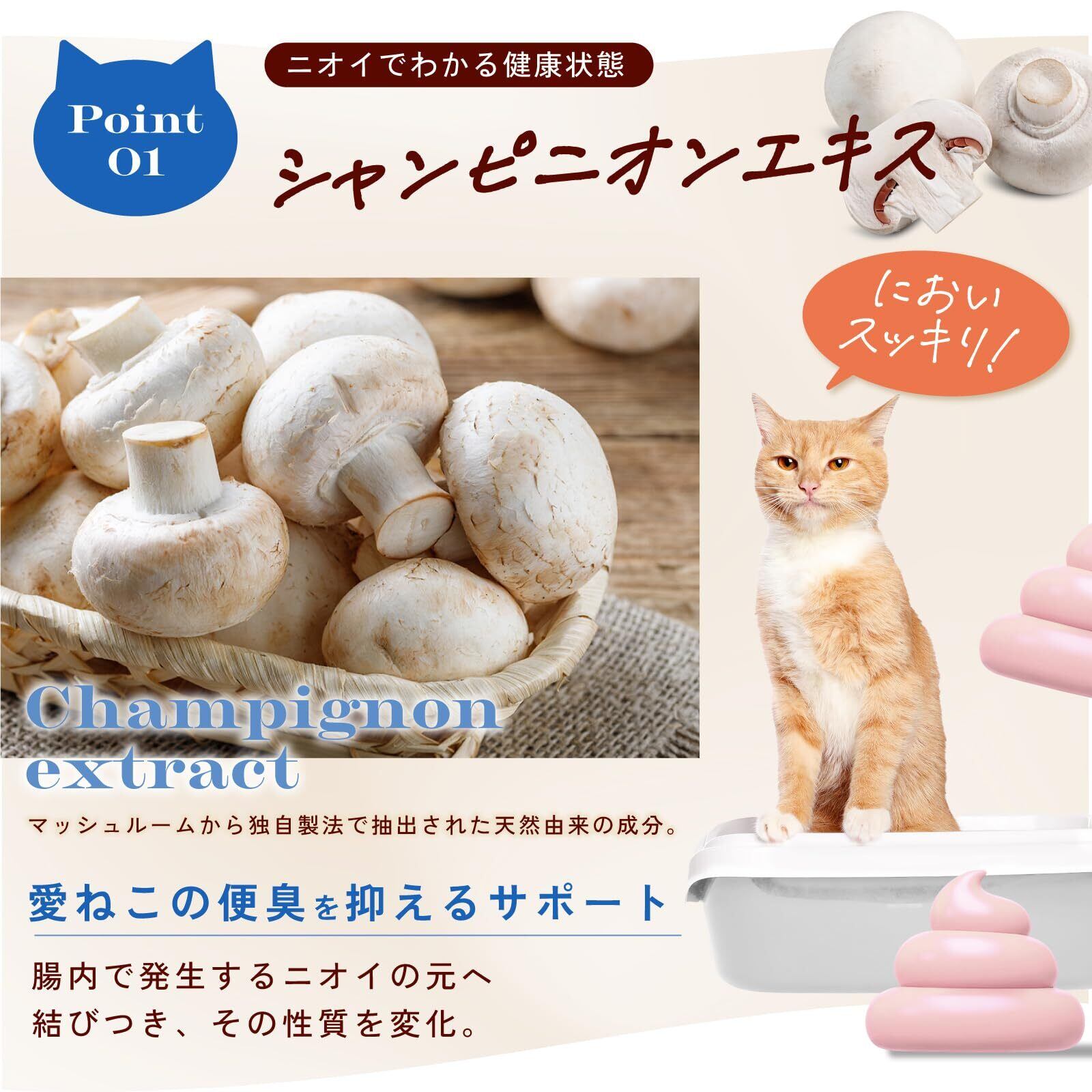 【匂いでわかる健康状態】愛ねこの便臭を抑えるサポート成分シャンピニオンエキスで匂いスッキリ
