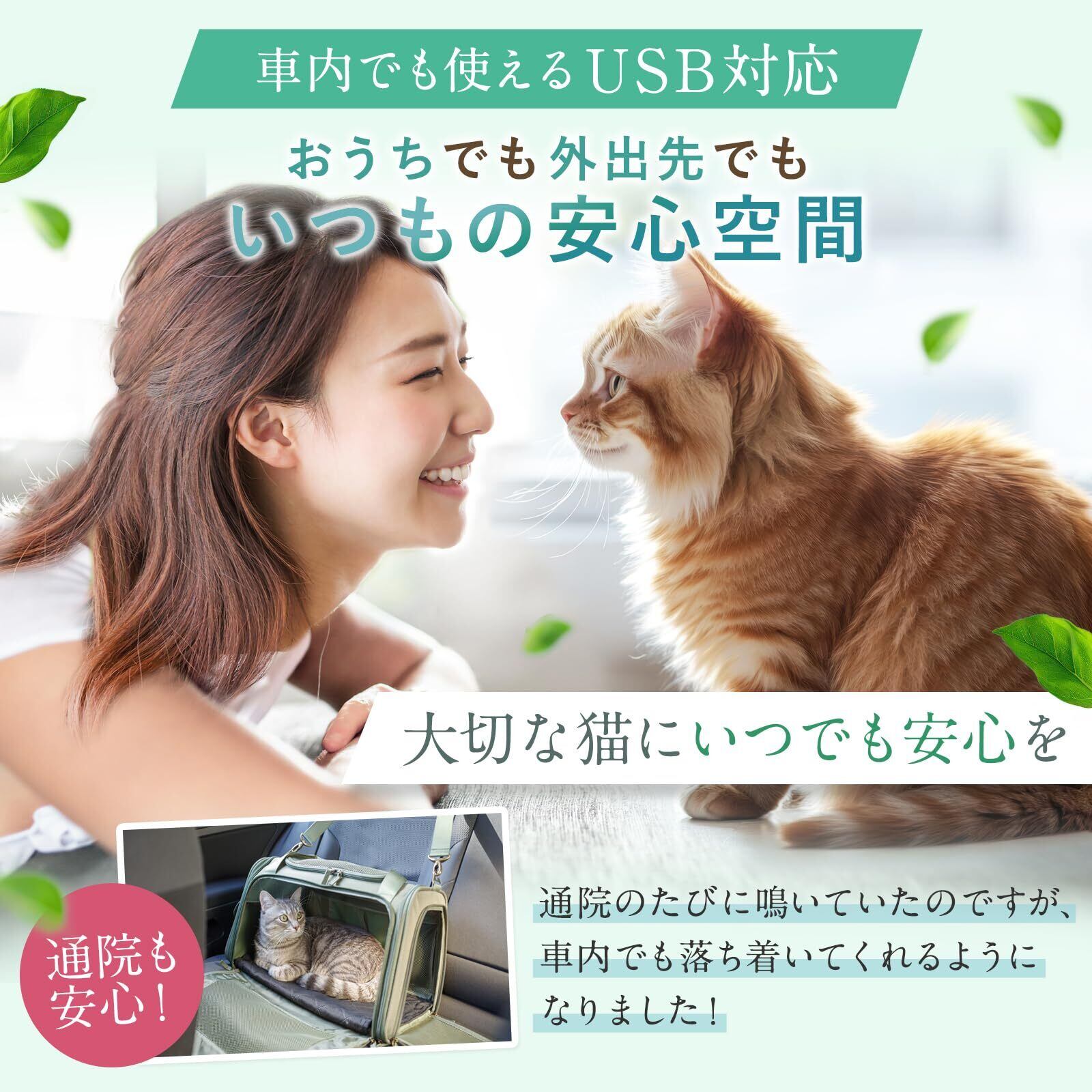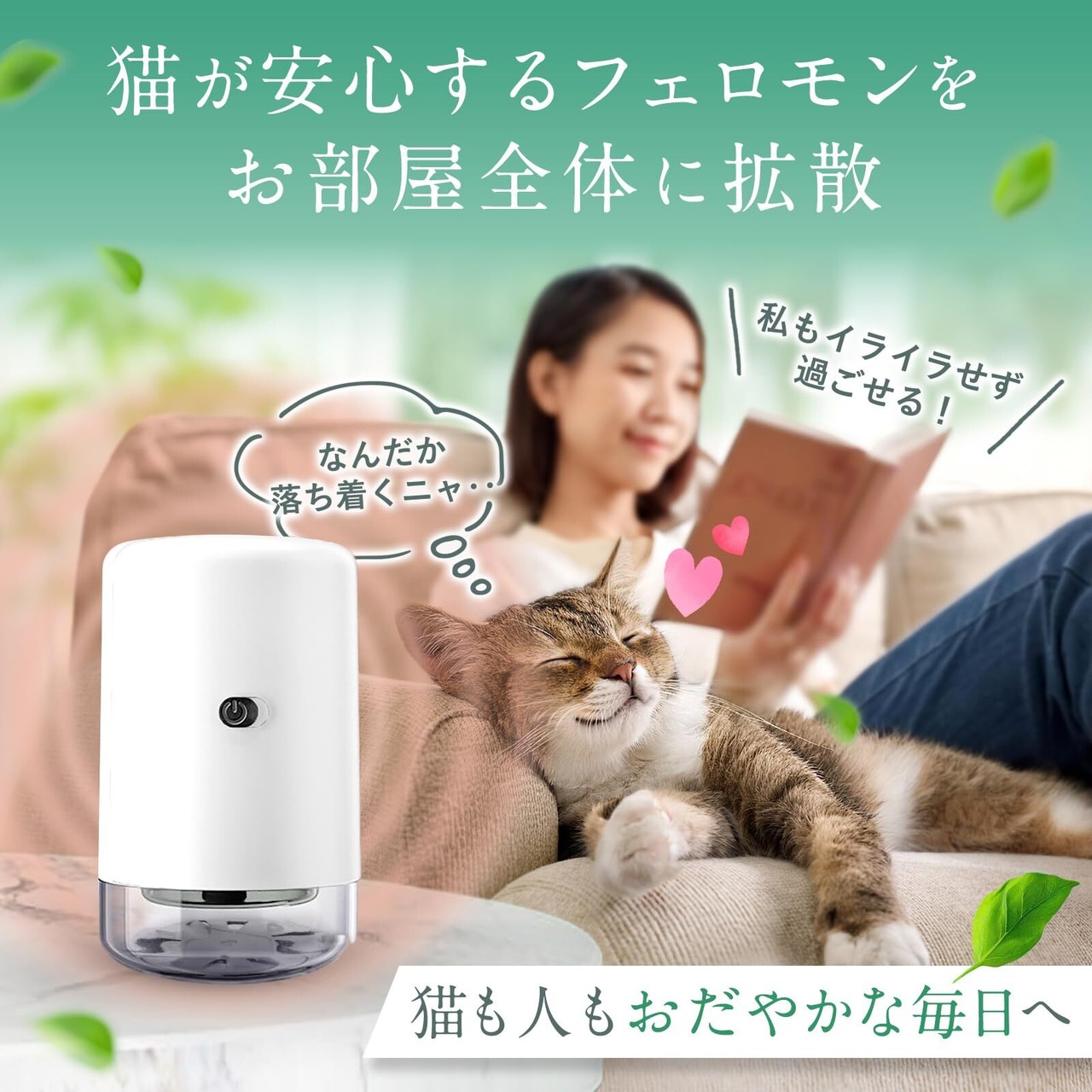 猫に落ち着きをもたらすフェロモン類似物が放出され、安心感を提供します。