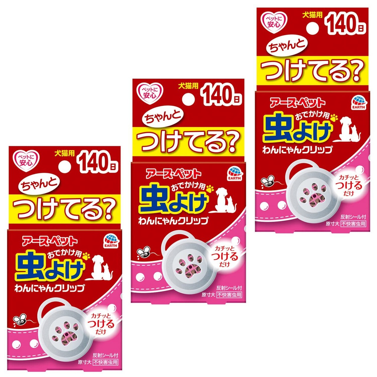 アース・ペット 虫よけわんにゃんクリップ 犬猫用 ミニサイズ 140日用×3個 (まとめ買い)