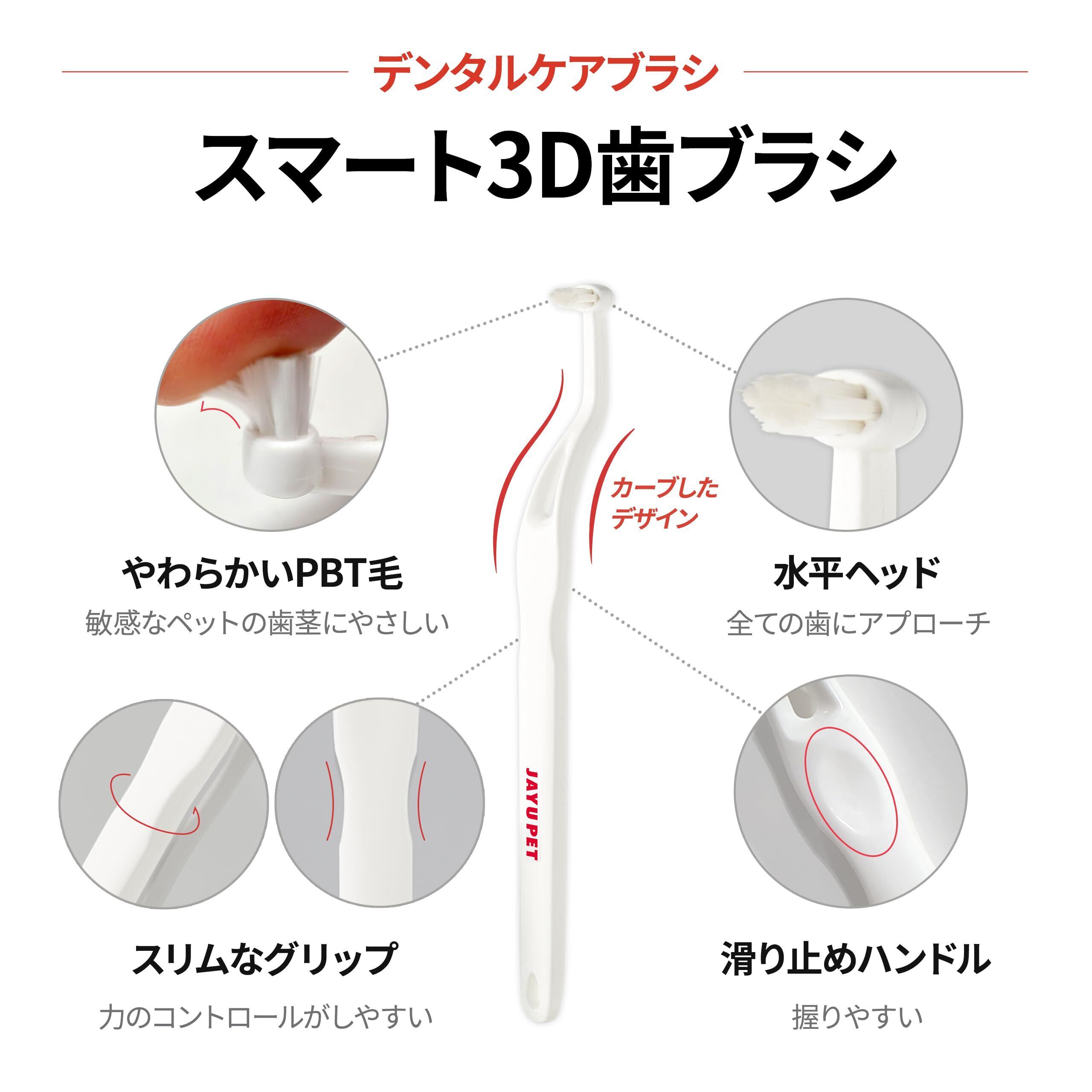 歯茎への刺激が少ない - 猫の鋭く曲がった歯や弱い歯茎に適した、横向きのフィット感のある歯ブラシです。JAYU PETデンタルジェルと併用するとより効果的です。