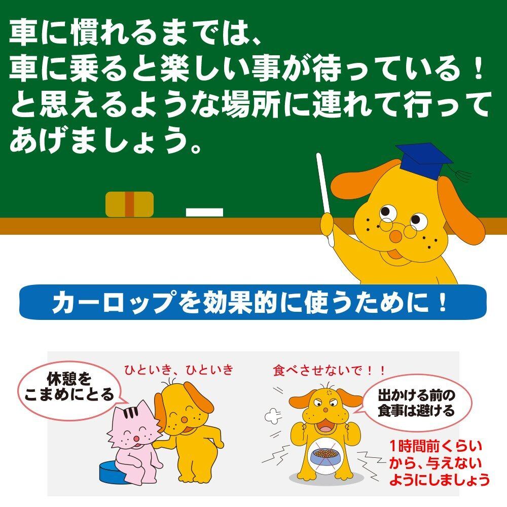 ペットとのドライブを楽しくする!食品成分で習慣性がないので安心です。