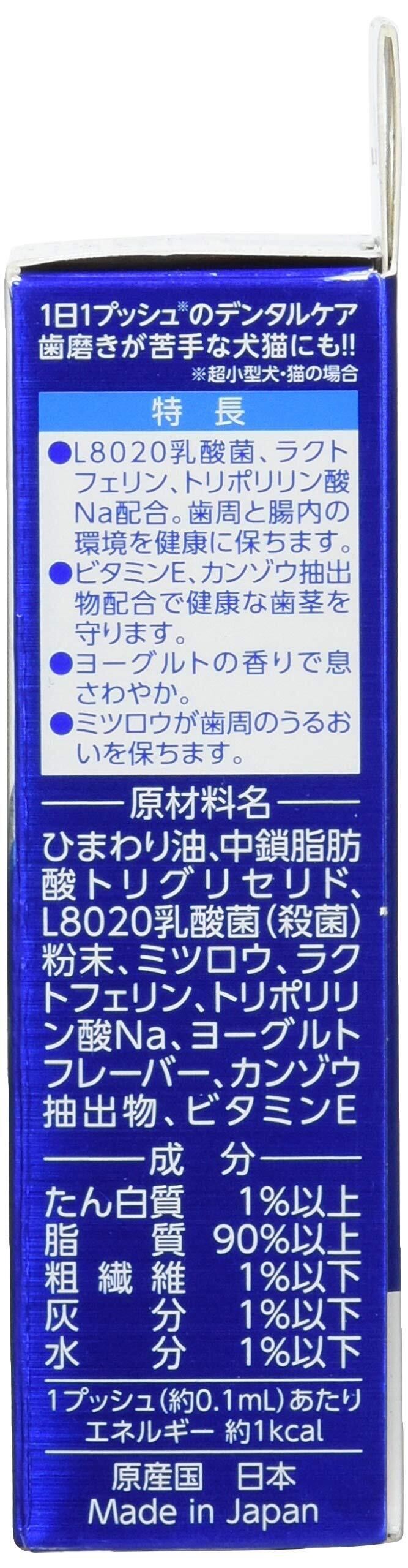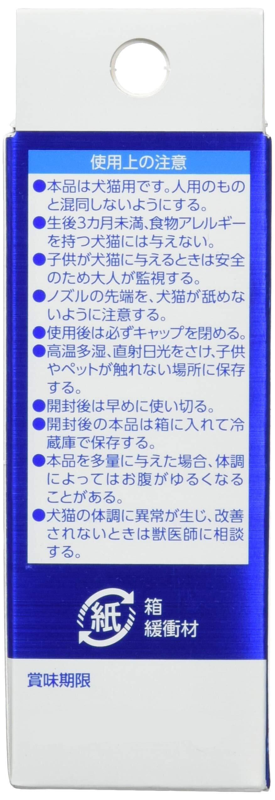 栄養成分:1プッシュ(約0.1ml)あたり粗たん白質1%以上、粗脂肪90%以上、粗繊維1%以下、粗灰分1%以下、水分1%以下