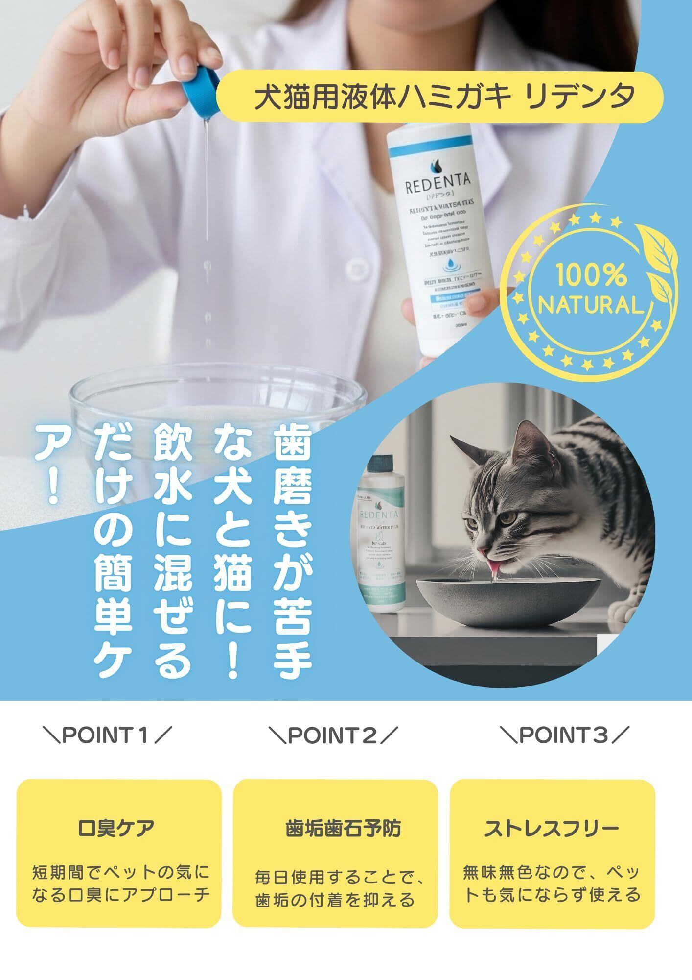 [REDENTA]飲水に混ぜるだけ!猫用 口臭ケア用液体ハミガキ リデンタ ウォータープラス for CAT 250ML