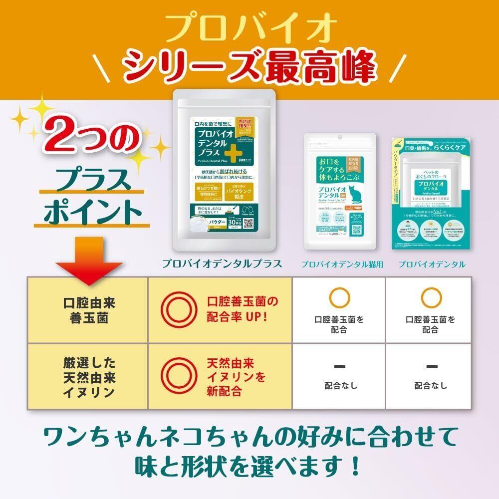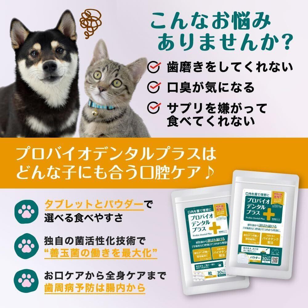 【プロバイオデンタル猫用をパワーアップ】猫ちゃん専用のプロバイオデンタルが強力にパワーアップ!さらにワンちゃん、ネコちゃんに兼用となりました。独自技術「biotank」によって開発されたデンタルケアサプリメントで、口臭、歯石など健康に重大な影響を及ぼすトラブルを強力ケア!