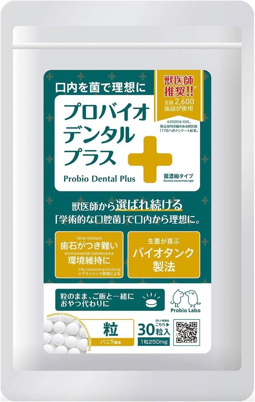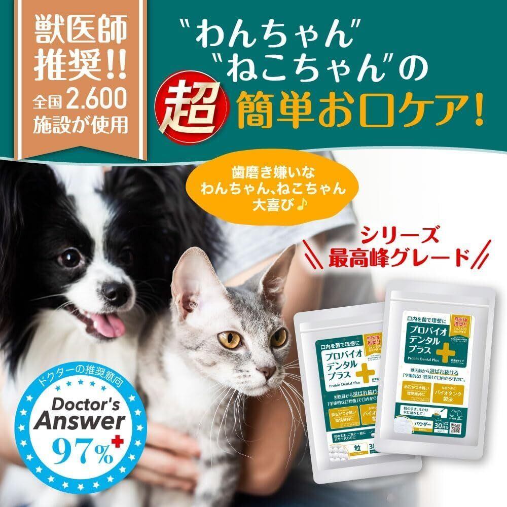 【獣医師の97%がおすすめ】2600以上の動物病院・施設で採用され、獣医師会の学会発表など学術的な報告多数。(2018年実績)使用経験のある獣医師107名の内104名が薦めたいと回答したお口の善玉菌サプリメント。(2020年自社調査)