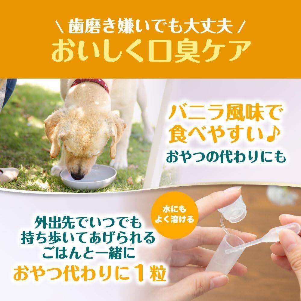 【食べやすいから続けられる】バニラ風味だから、ワンちゃん、ネコちゃんも無理なく食べられます。タブレットタイプなので取り出しやすく持ち運びにも便利でおやつ感覚で続けることも可能です!