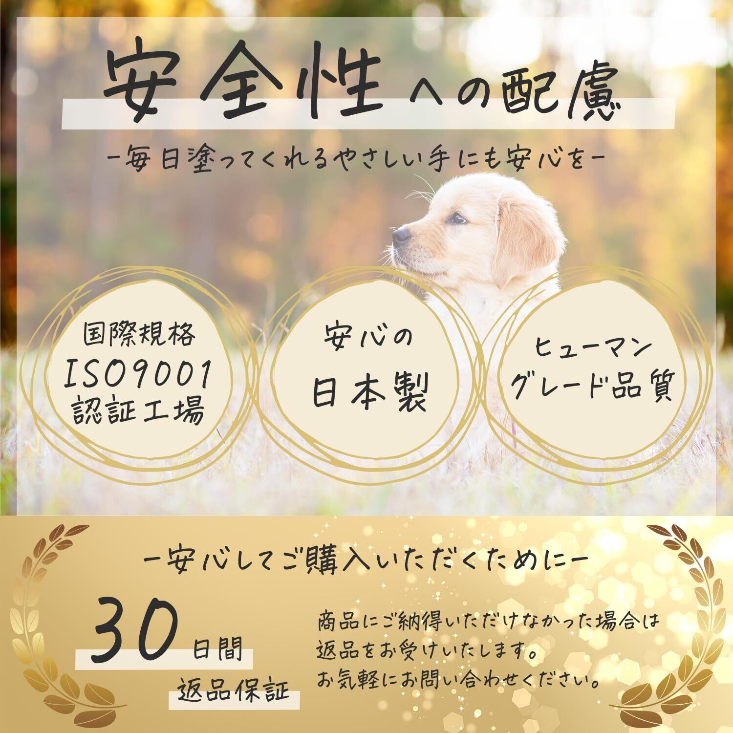 ISO認定の国内工場で一貫した製造管理。13種類のフリー処方でワンちゃん・猫ちゃんの負担を極限までカットしています。人間用と変わらない品質管理で飼い主さんの肌にも優しいクリームです。