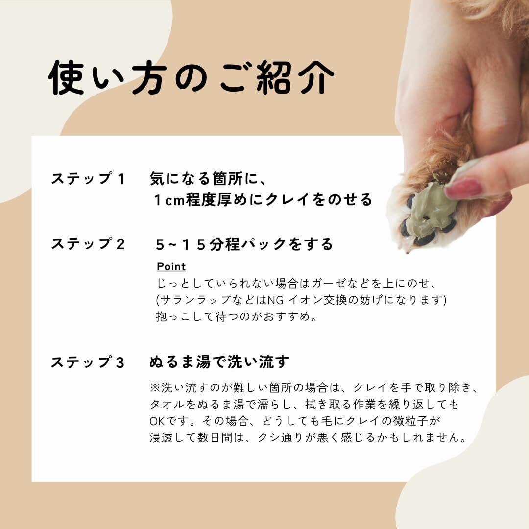 【 獣医師監修・100%ナチュラル処方 】指間炎、肛門の赤み、皮膚のトラブルには、高純度・微粒子のオーガニッククレイパックを!100%天然由来成分でなめても安心。自然療法のクレイテラピー処方。