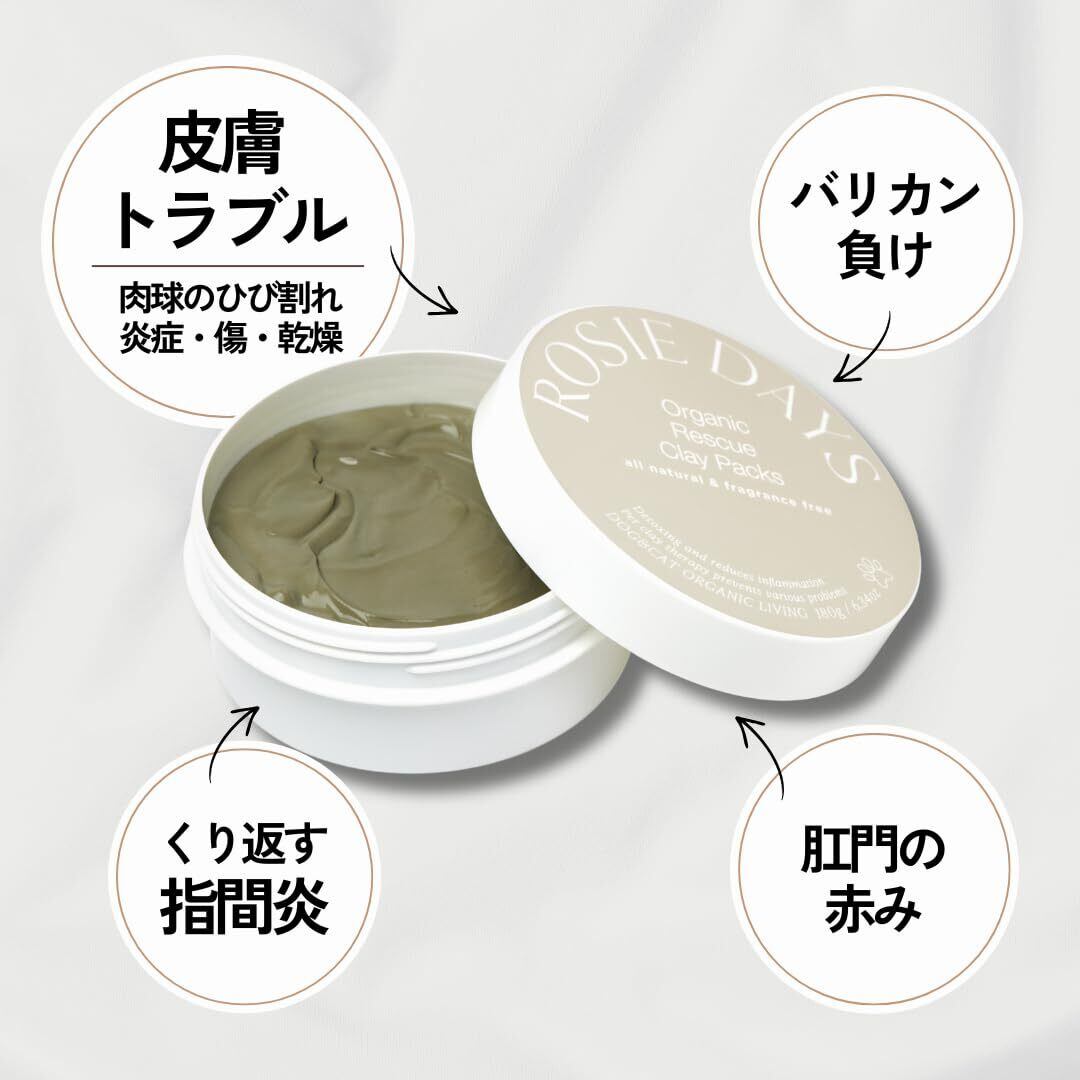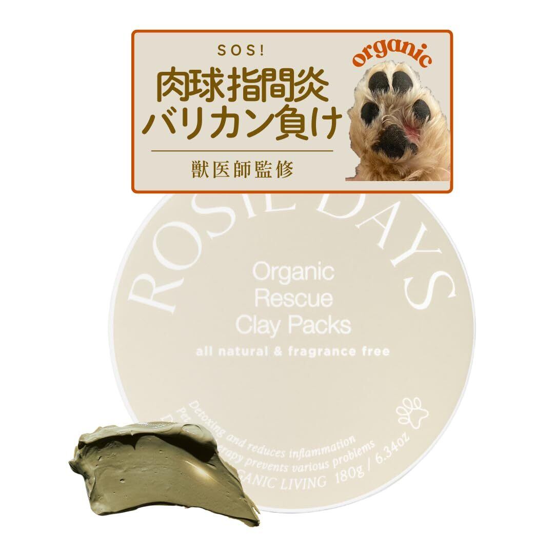 ROSIE DAYS オーガニックレスキュークレイパック 【獣医師監修】 オーガニッククレイパック 犬 猫 獣医師監修 犬猫兼用 肉球 手舐め 皮膚トラブル 肛門 炎症 傷 火傷 修復 100%天然由来成分 180g