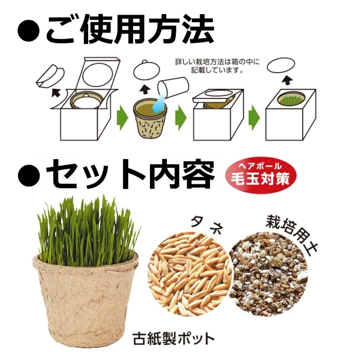 素材・材質: 種子:燕麦 ・ 用土:バーミキュライト、ピートモス、パーライト ・ 容器:古紙