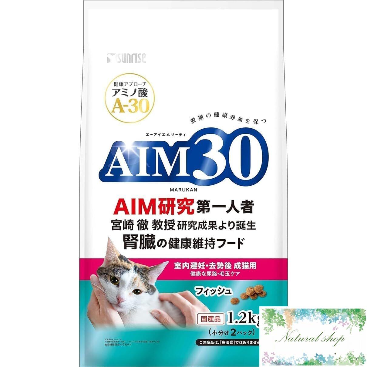 AIM30 室内避妊・去勢後 成猫用 健康な尿路・毛玉ケア フィッシュ 1.2kg 腎臓 オリジナルポケットティッシュ付き