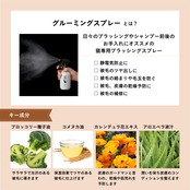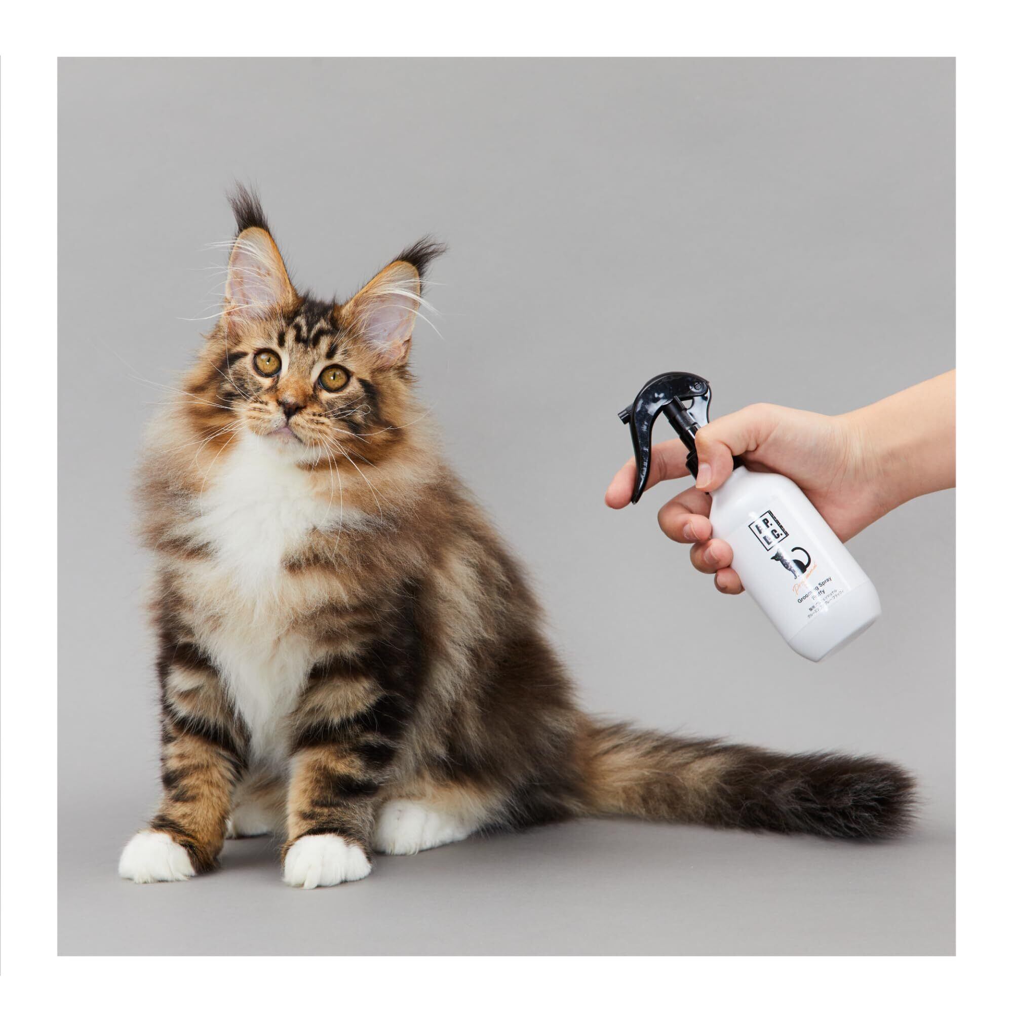 【使用方法】本品を良く振ってから猫の全身を霧で覆うように、1~2回スプレーをしてから、ブラッシングしてください。シャンプー前の毛玉を取る際にもお使いいただけます。