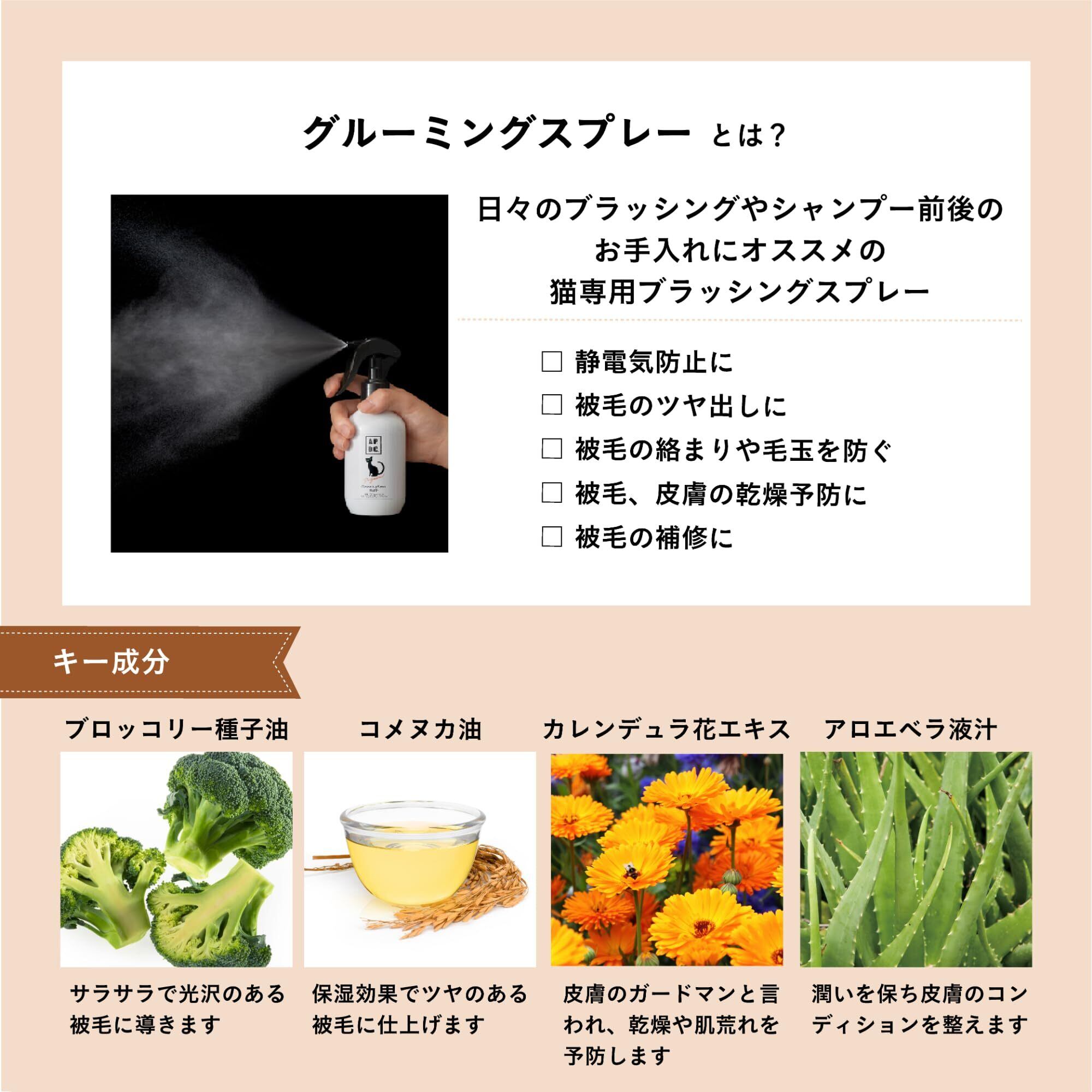 【猫の専門家と共同開発】A.P.D.C. 猫用プロフェッショナル グルーミングスプレー フラッフィ 200mL 全猫種対応 ブラッシングスプレー ノンアルコール 毛玉 毛ヅヤ 静電気防止 グリーンティの香り