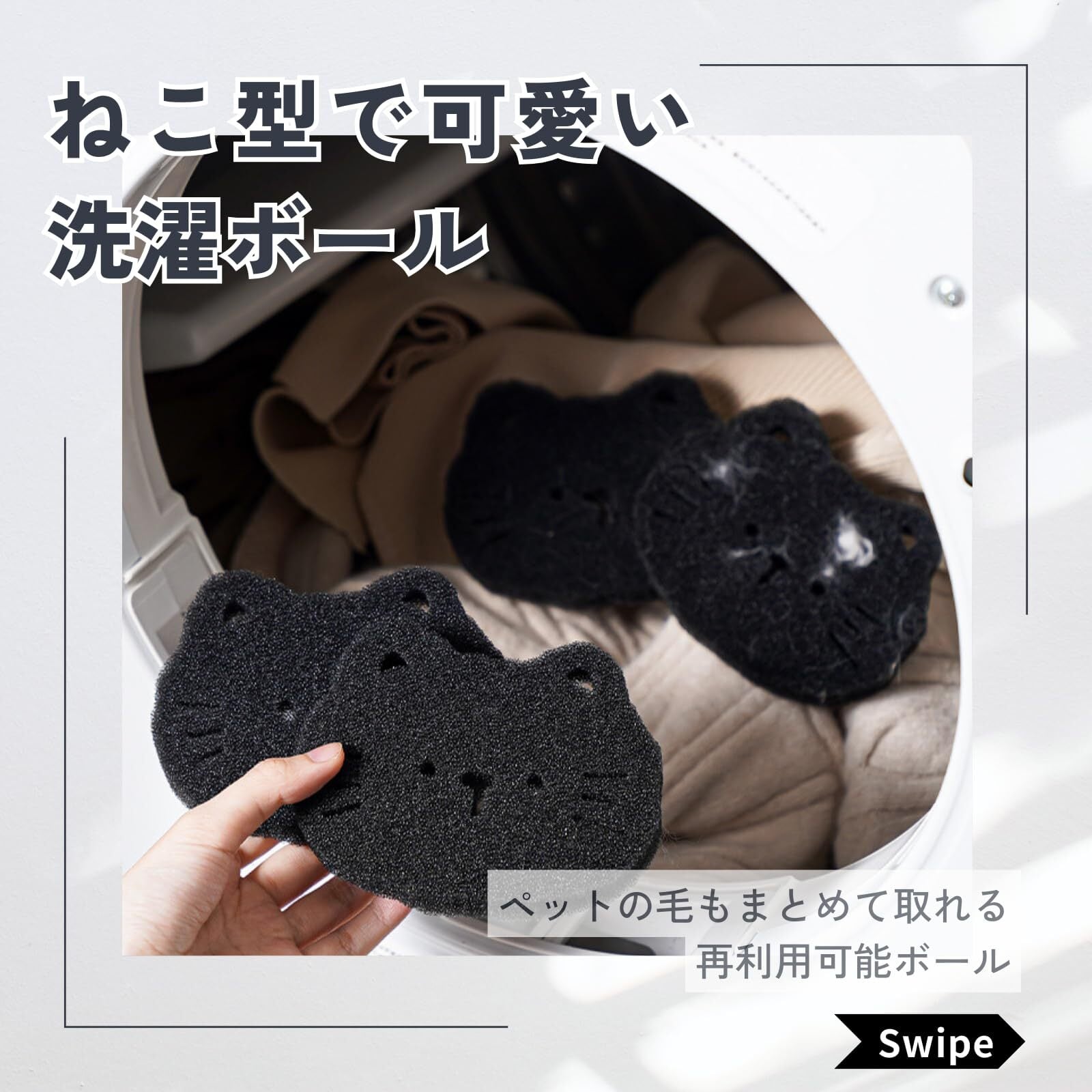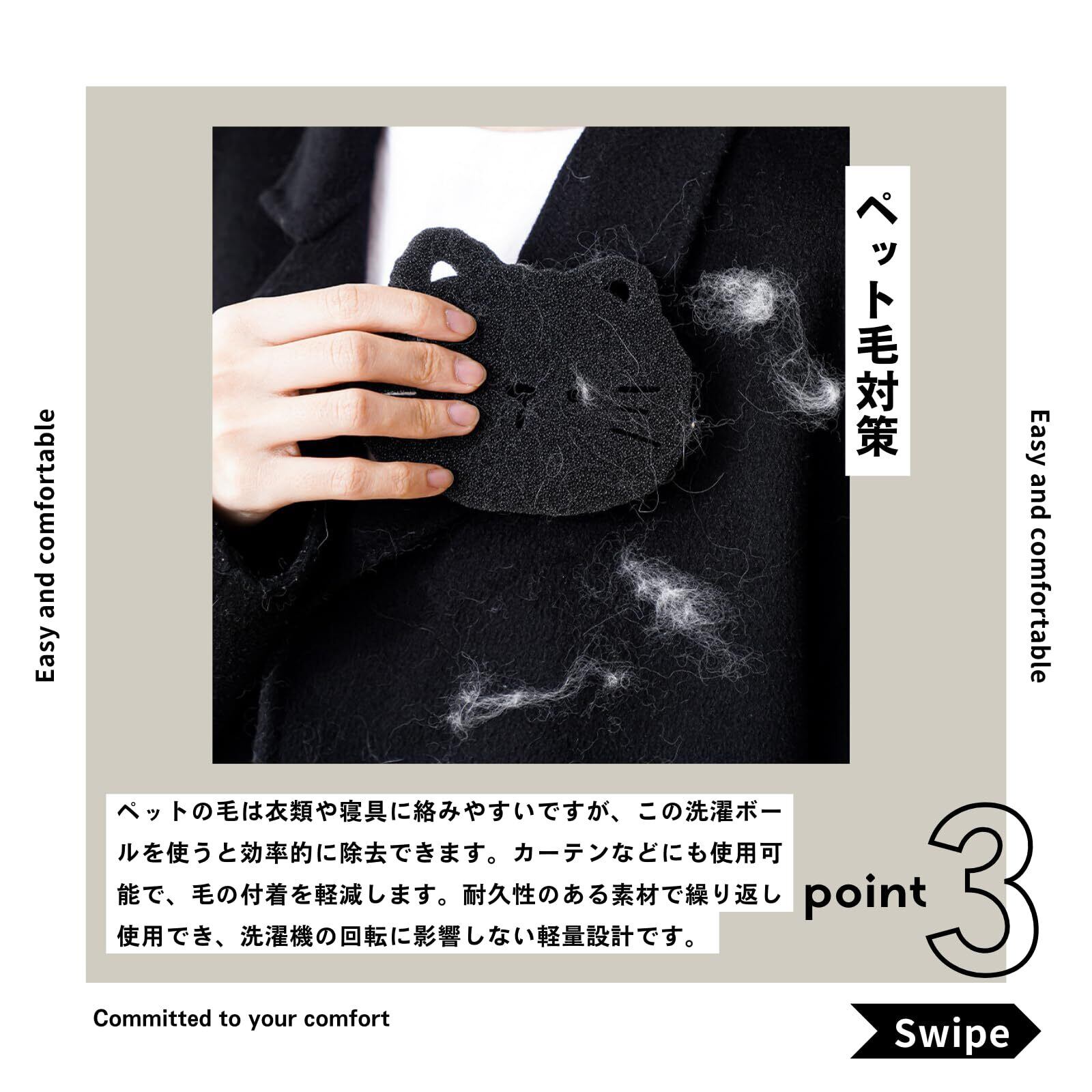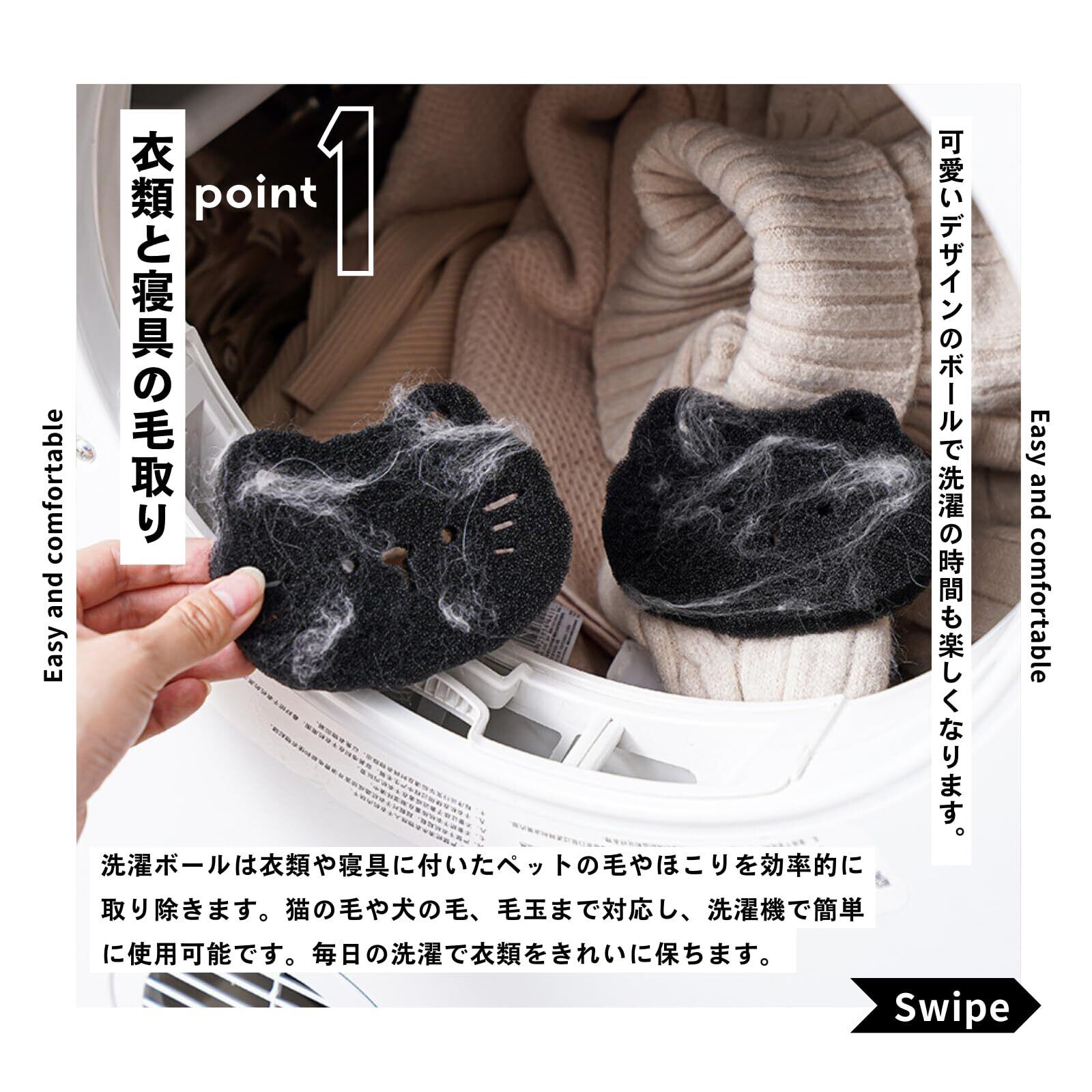 【衣類と寝具の毛取り】 洗濯ボールは衣類や寝具に付いたペットの毛やほこりを効率的に取り除きます。猫の毛や犬の毛、毛玉まで対応し、洗濯機で簡単に使用可能です。可愛いデザインのボールは洗濯の時間も楽しく、毎日の洗濯で衣類をきれいに保ちます。