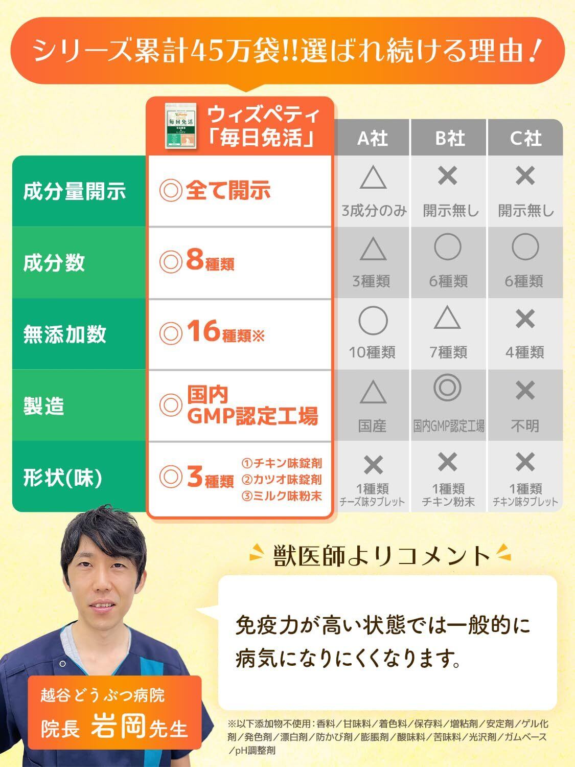 【毎日サプリシリーズ累計販売数70万袋!実感できるペットサプリ】ウィズペティのペットサプリメント「毎日サプリシリーズ」は2014年の販売開始から今日まで沢山のお客様にご愛用頂いております。(シリーズ累計販売数は70万袋/2025年10月時点)これからもお客様のお声を大切にし、製品の開発・サービスの向上に努めてまいります。