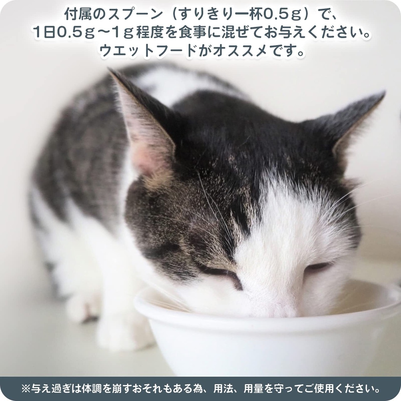 付属のスプーンで、ご飯にかけてお与えください。ドライフード、ウエットフードどちらでも大丈夫です。