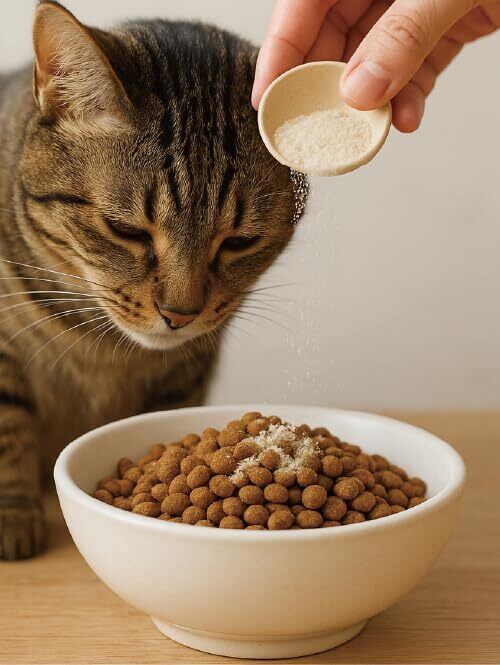 1日1回、いつものフードに直接振りかけてください 付属のスプーンで愛犬・愛猫の体重に合わせて計量