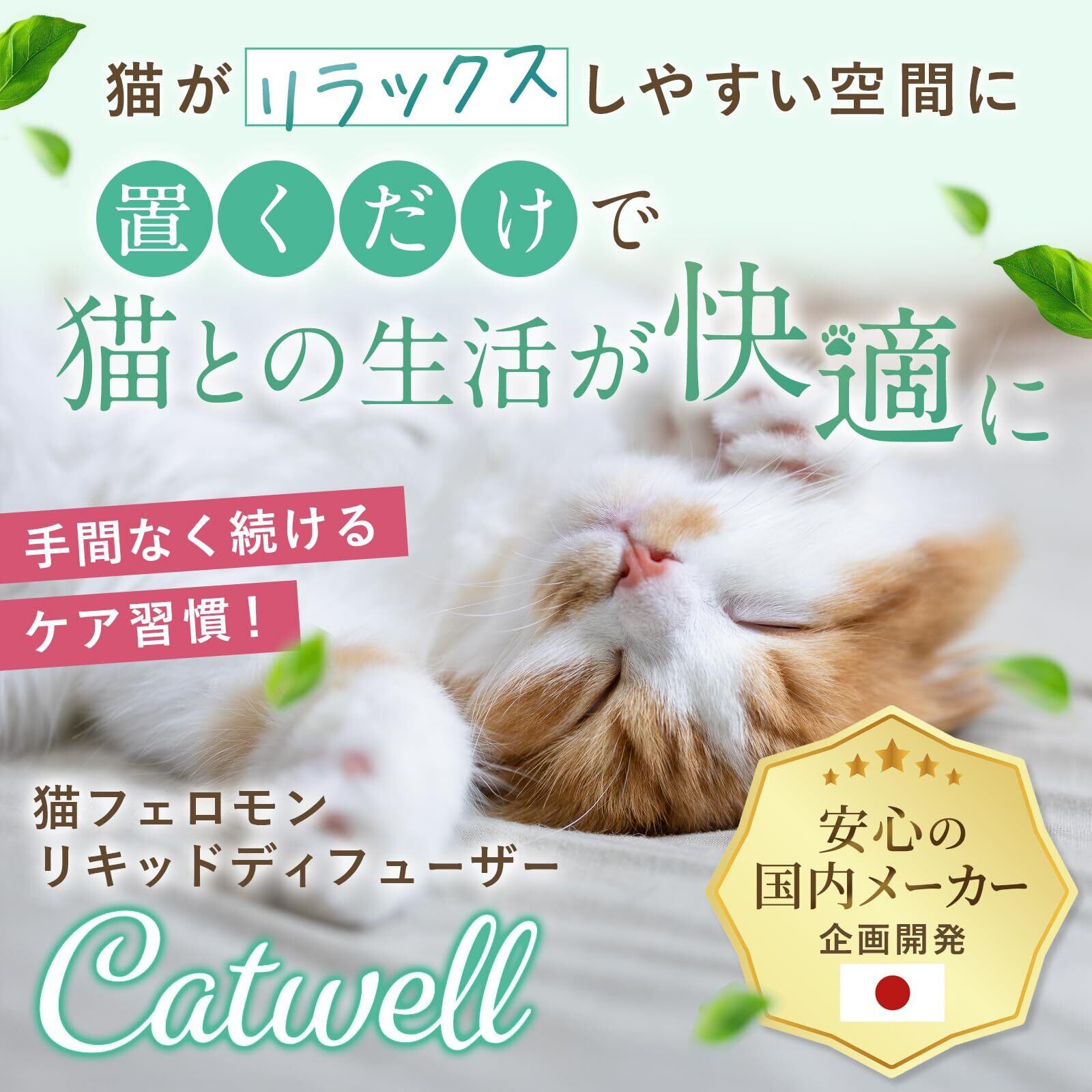 ●最大限の効果を得るためには、専用拡散器を24時間継続 したままにし、約30日ごとにキャットウェルリキッドを交換 してください。
