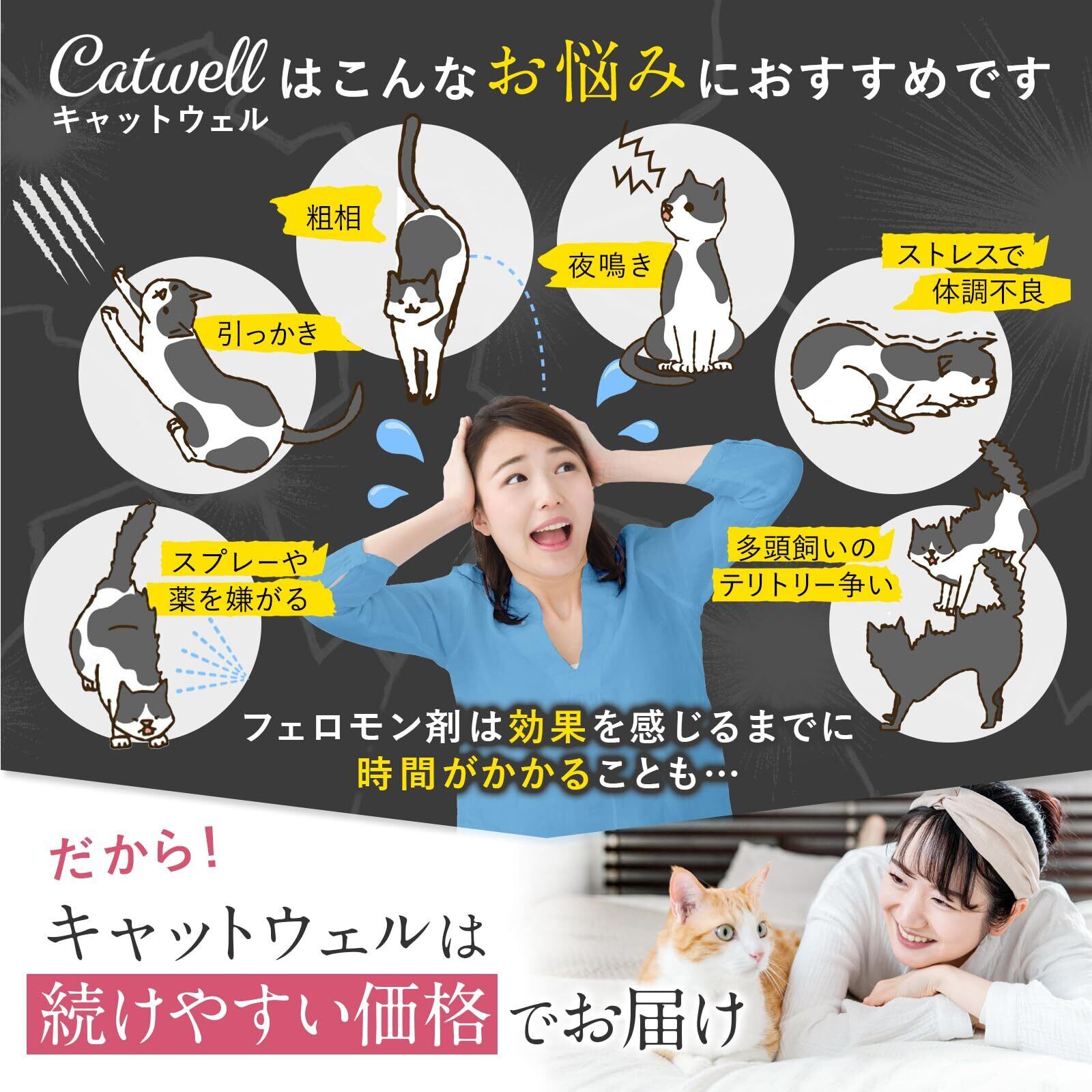 【安全性】フェロモン類似物は猫にのみ効果を発揮し、人間や他のペットには影響を及ぼしません。