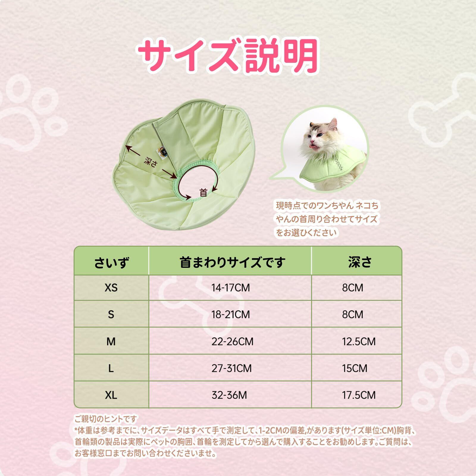 TOUCHDOG 犬 猫 エリザベスカラー ソフト 軽量 柔らかい 小型犬用 猫用 通気性 ストレスフリー デザイン 防水PUコーティング 洗濯可 快適 フィット 術後ケア 傷舐め防止 おしゃれ (グリーン, XS)