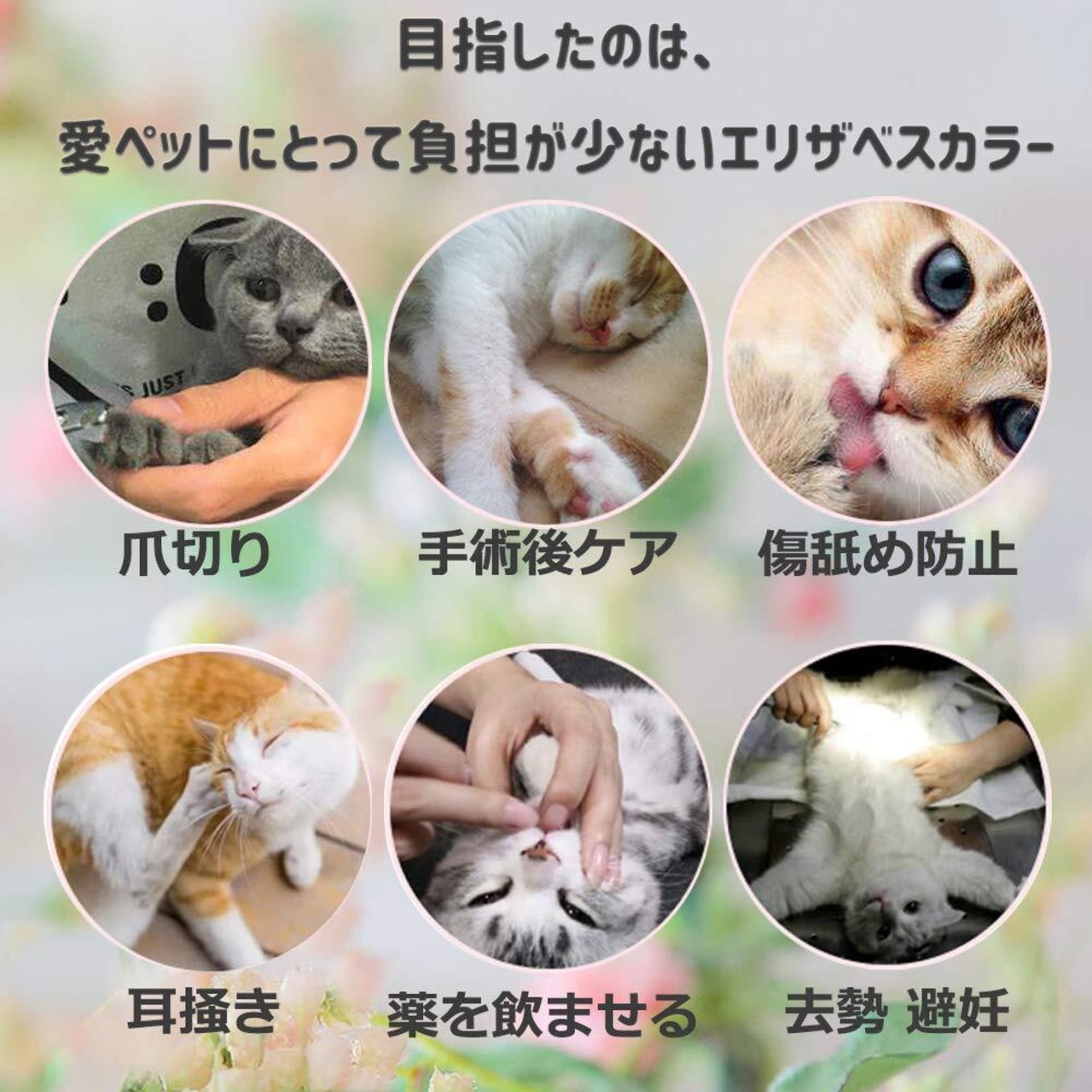 ペットの皮膚病、美容、傷害、かゆみ、赤みや手術の回復の過程等で、舐めたり、噛んだりする行為に対して保護効果を得られます。