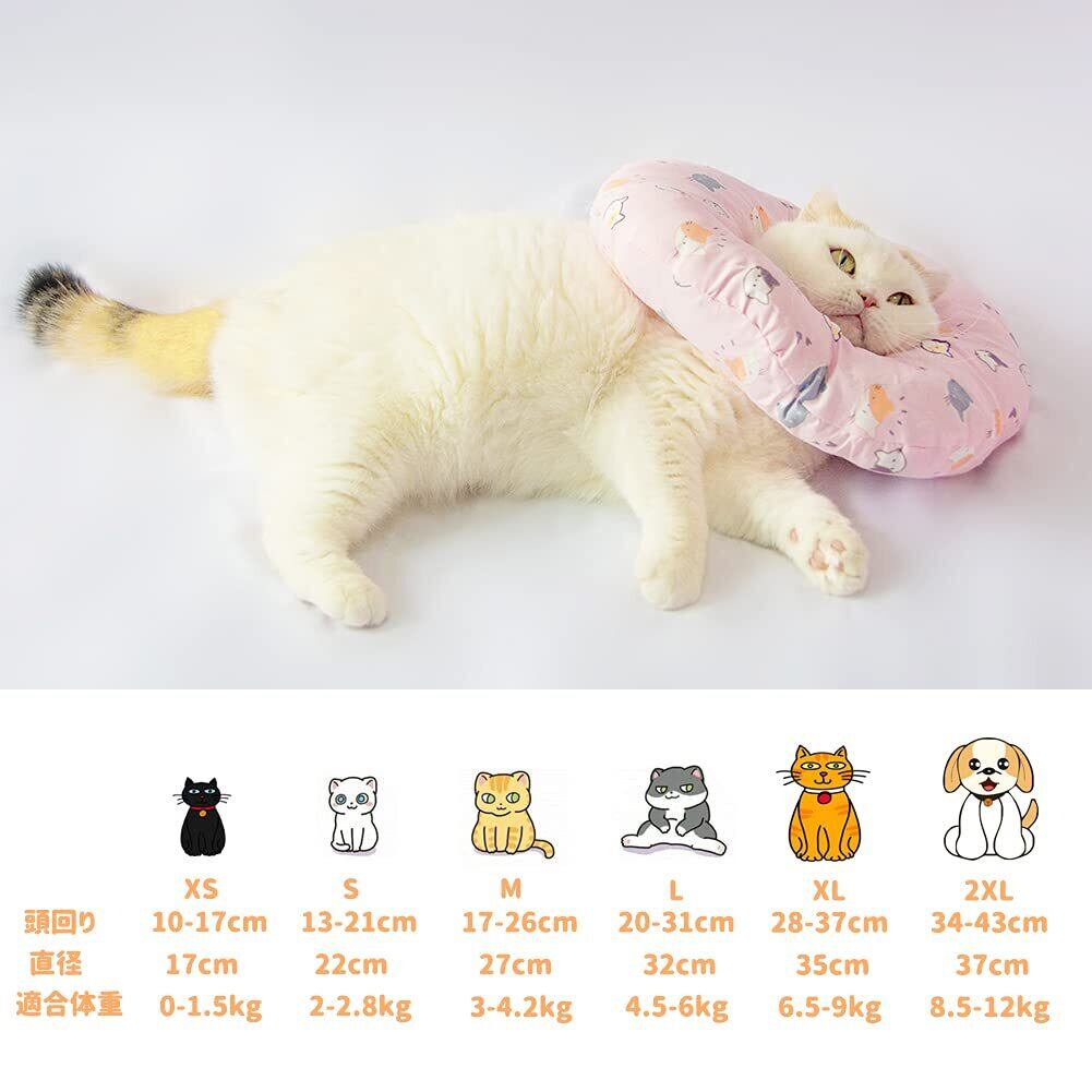 KUVEELA PET 猫 小型犬 エリザベスカラー ドーナツカラー エリザベス クッション 柔らかい 軽い ペット用品 手術後ケア 傷口なめ防止 噛み防止 耳掻き 爪切り 去勢 避妊(色ランダム、XS)