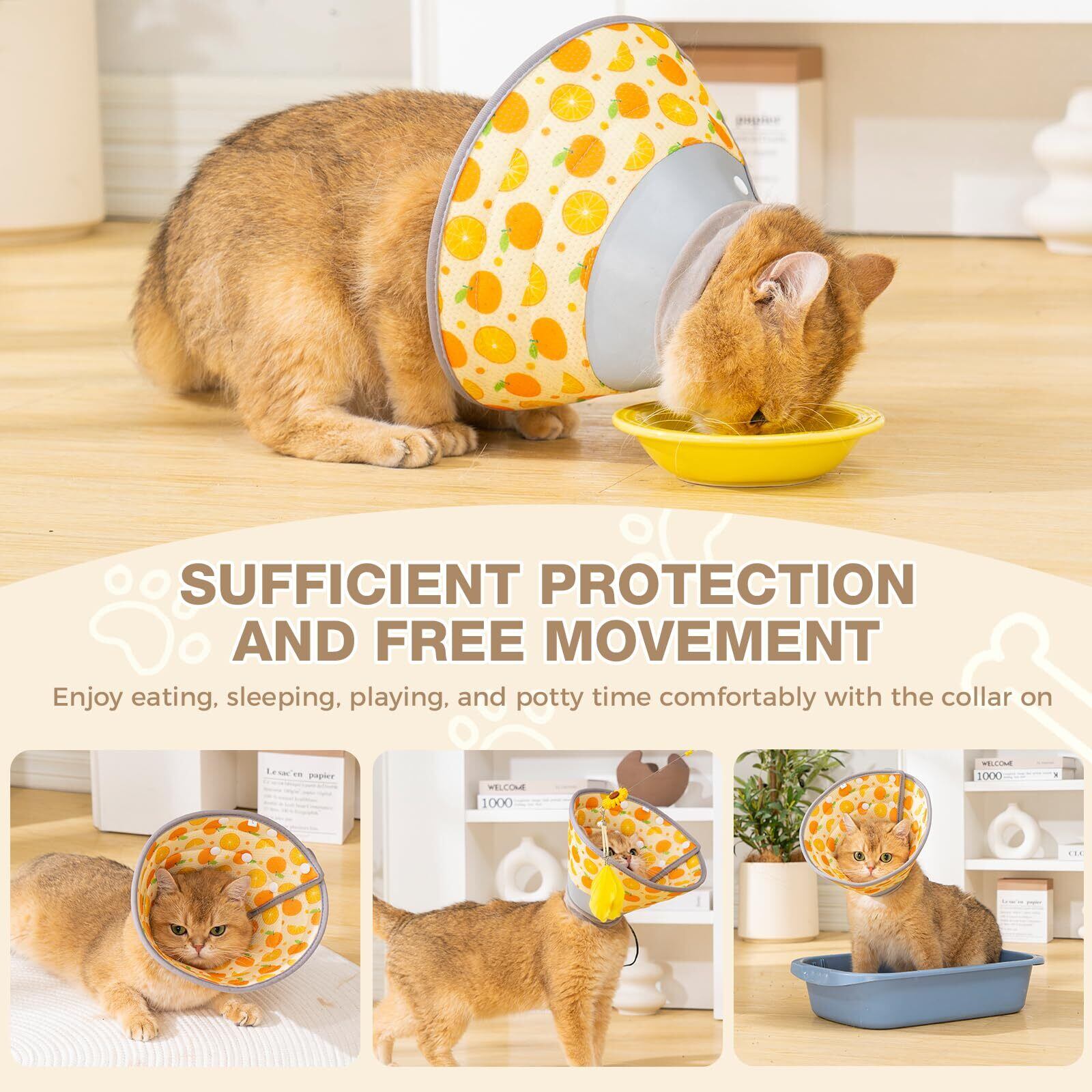Avontエリザベスカラー 猫用 小型犬用 通気性 ソフト 軽量 手術後 傷口保護 舐め防止 引っ搔き防止 -オレンジ