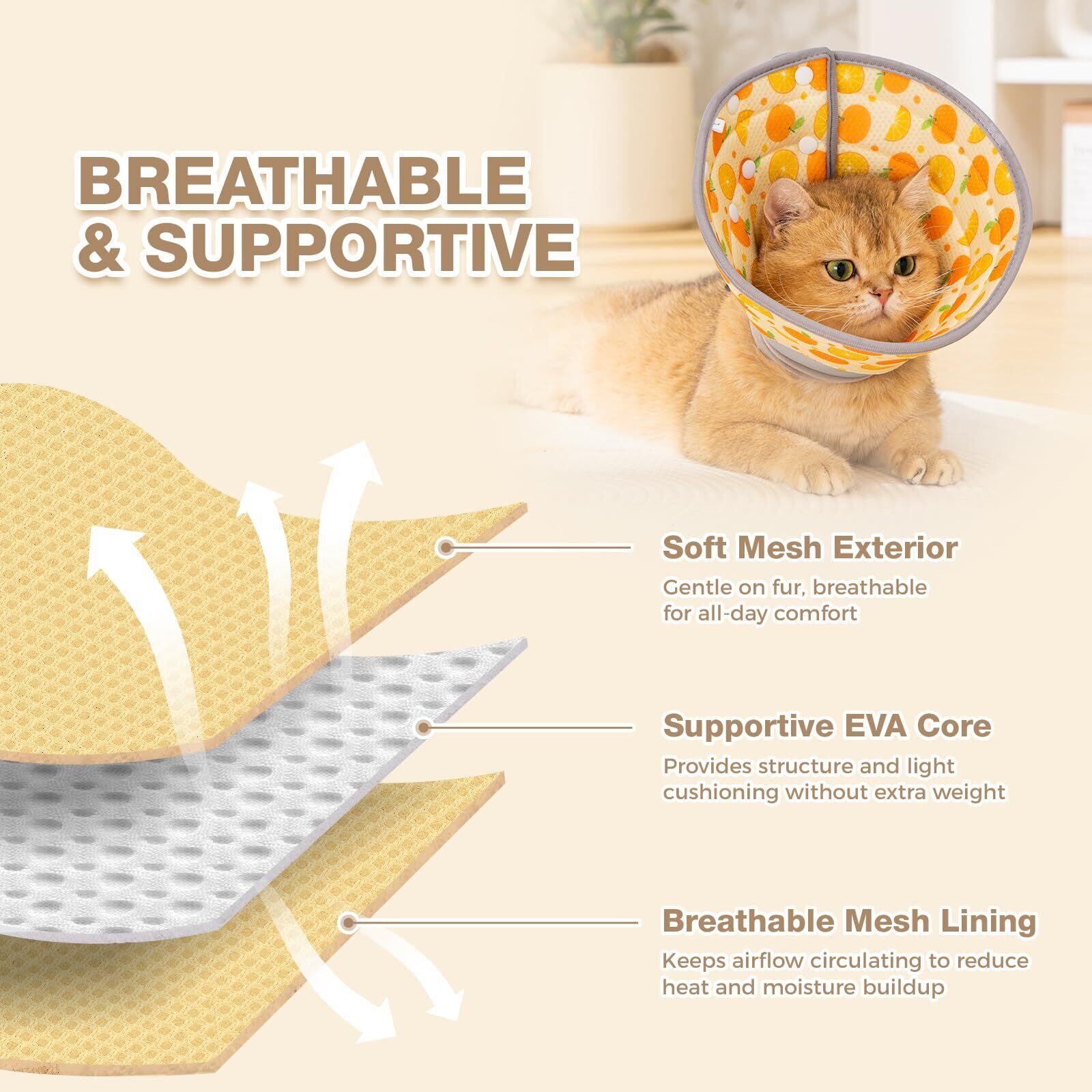 通気性抜群の軽量設計:3層メッシュ構造で蒸れにくく、超軽量。ペットの首に負担をかけません