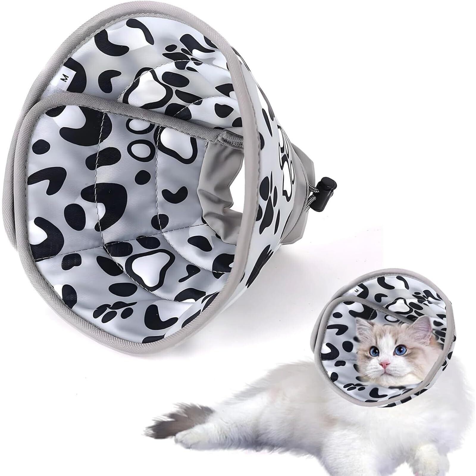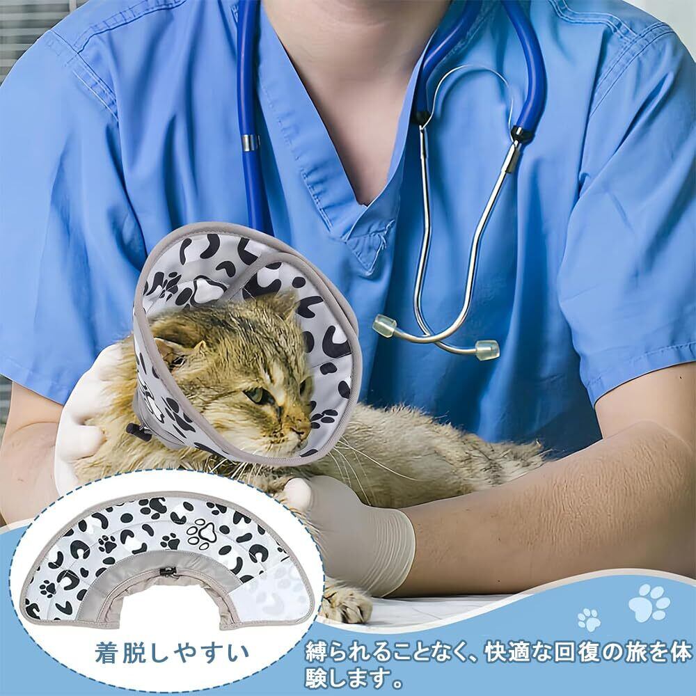 KALOLINNA エリザベスカラー 猫 犬 柔らかい可愛い 傷口保護 引っ掻き防止 手術後の傷なめ防止 軽量 通気性 防水 (グレー, M)