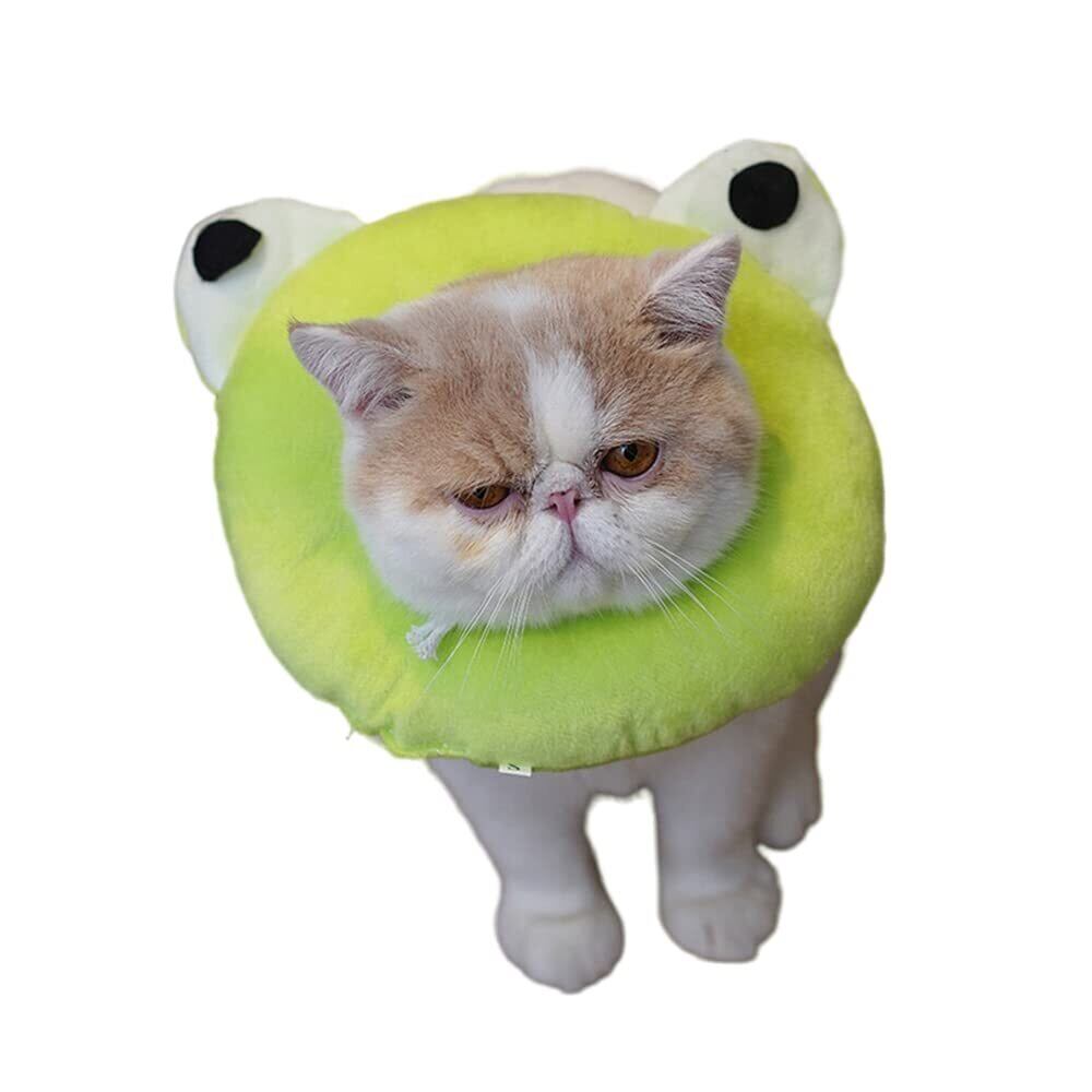 ネコ エリザベス カラー 犬 猫 ペット ふわふわ 柔らかポリエステル 首 プロテクター 衣装 傷なめ防止 とっても可愛いペット用エリザべスカラー (グリーン, M)