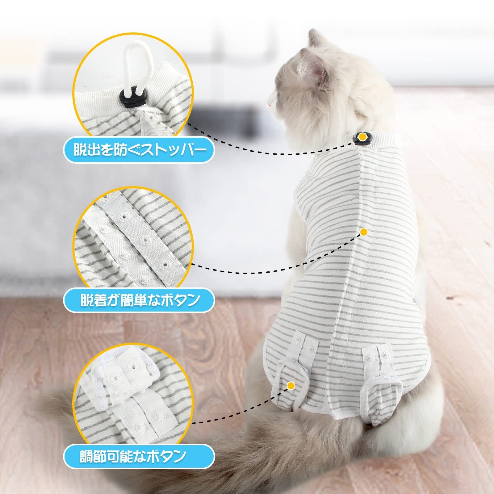 術後服 猫用 ペット術後ウェア 介護服 皮膚保護 不妊手術 傷口保護 避妊 傷舐め 引っ掻き防止 手術用 男の子 女の子 兼用 (L, グレー)