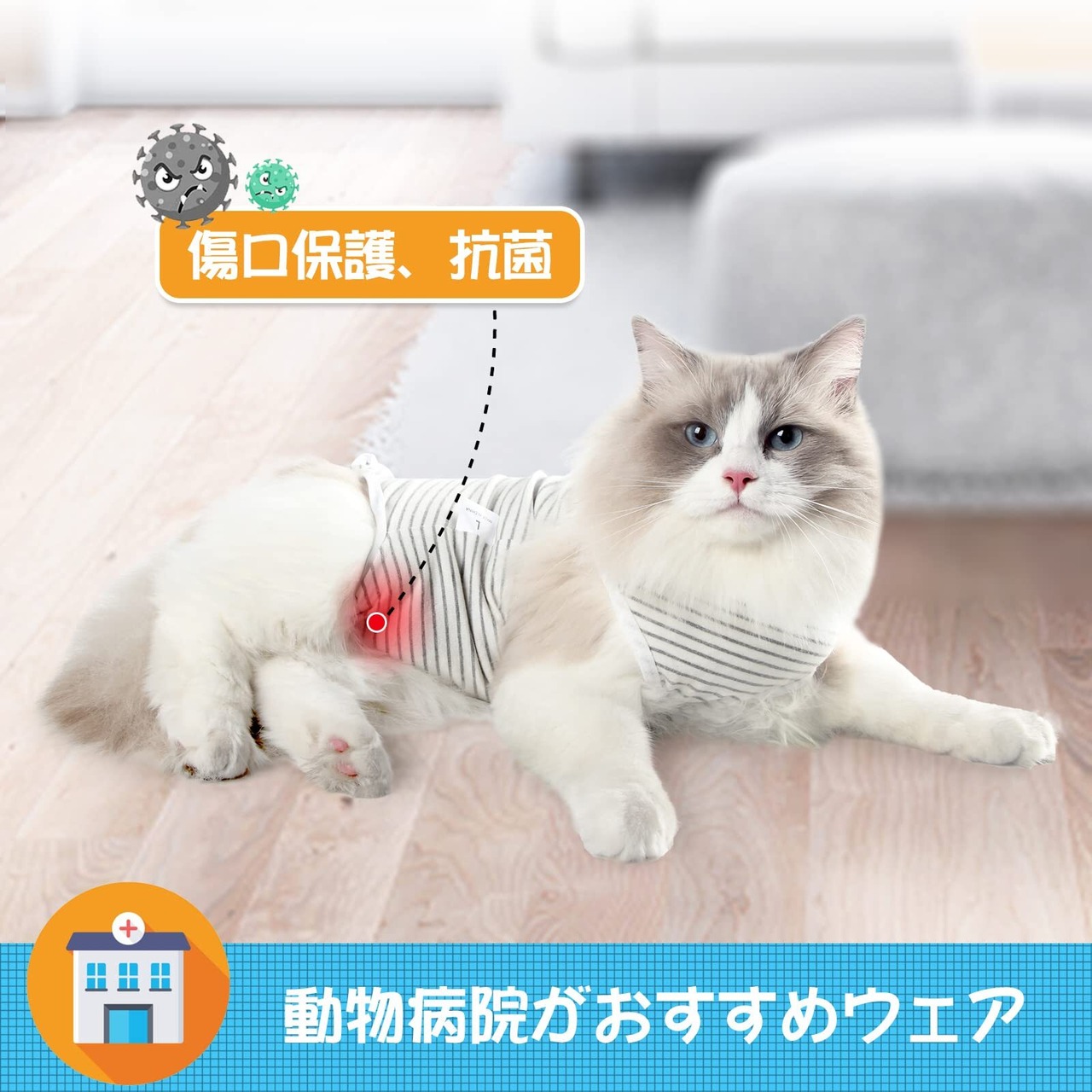 【日常生活そのまま】避妊手術や開腹手術後、妊娠傷口、乳腺腫瘍などの自壊傷口保護にお使い頂ける術後服です。高品質コットン生地で、皮膚への刺激と負担をできるだけ軽減し、余計な飾り付けずに猫ちゃんの動きを妨げません。彼らは飲め、食べられ、排泄することでも安心、自分の日常生活をそのまま行うことができます。