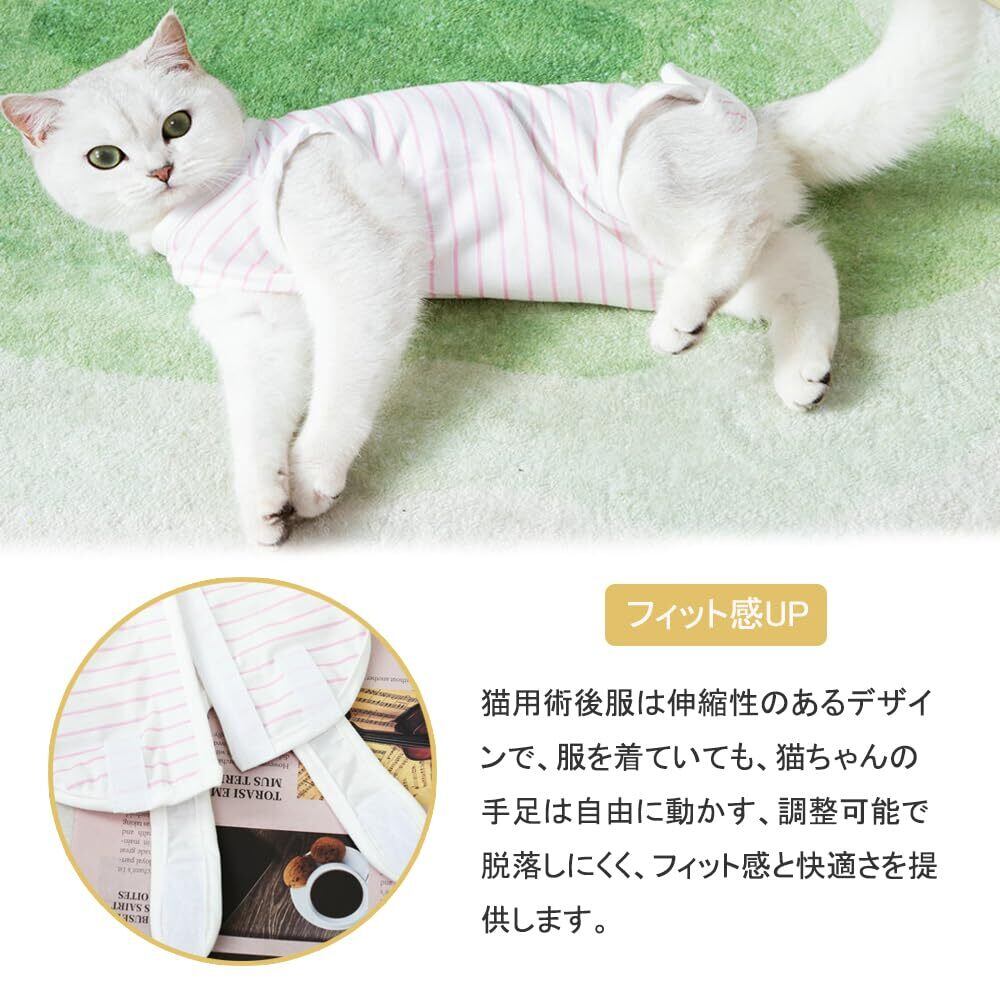 フィット感UP:猫用術後服は伸縮性のあるデザインで、服を着ていても、猫ちゃんの手足は自由に動かす、調整可能で脱落しにくく、フィット感と快適さを提供します。