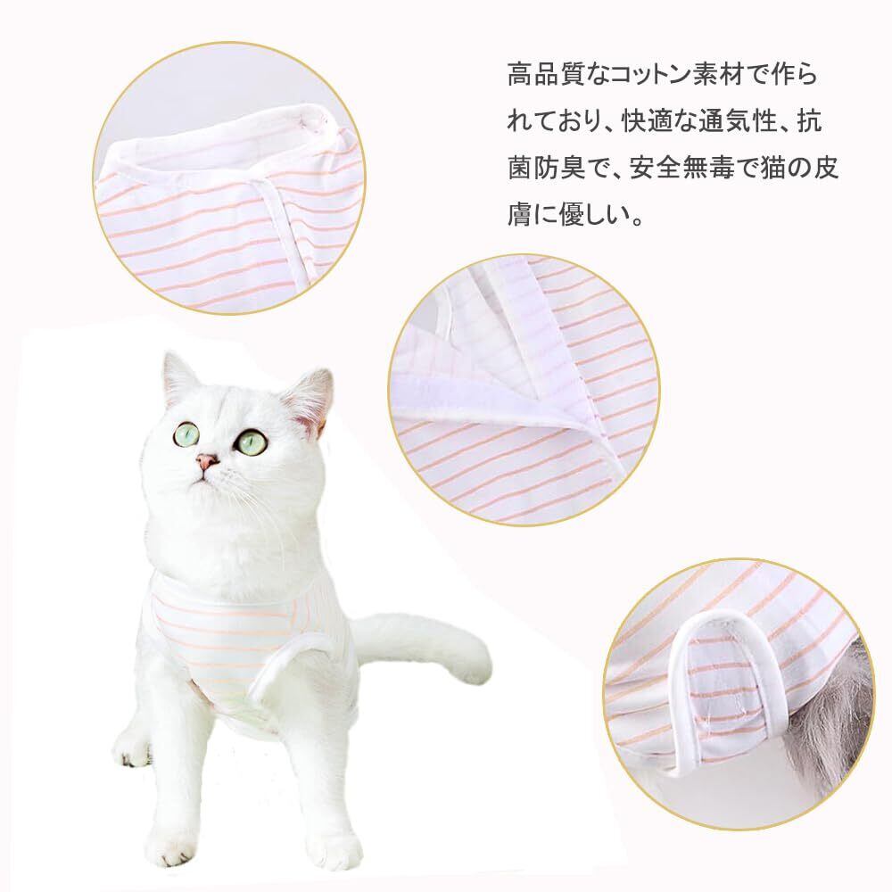 高品質素材:高品質なポリエステル素材で作られており、柔軟性抜群で生地、快適な通気性、抗菌防臭で、安全無毒で猫の皮膚に優しい、優れた耐久性あるペット術後服で。