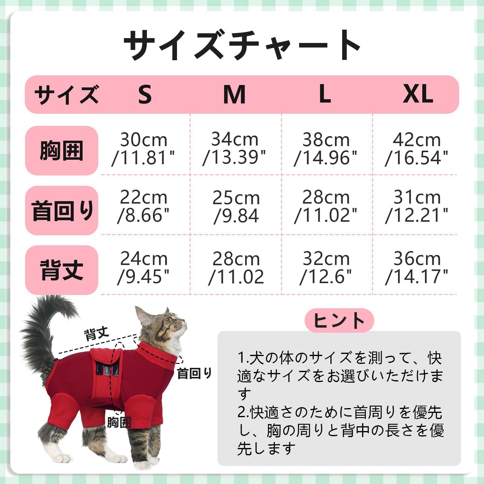 DENTRUN猫 服 猫用 ロンパース 猫の服 皮膚保護 傷口保護 舐め防止 抜け毛対策 ストレス軽減 術後 離乳 鎮静 旅行 ペット服 通気 調整可能(レッド, L)