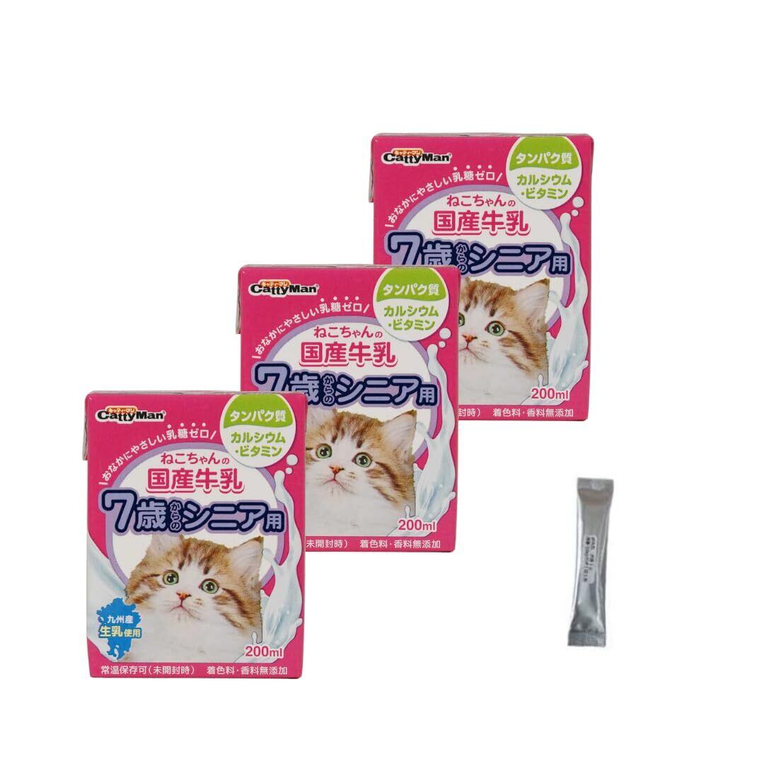 ねこちゃんの国産牛乳 7歳からのシニア用 200ml 3セット 【猫にも使える シニア用サプリメント 犬潤1g×3セットつき】