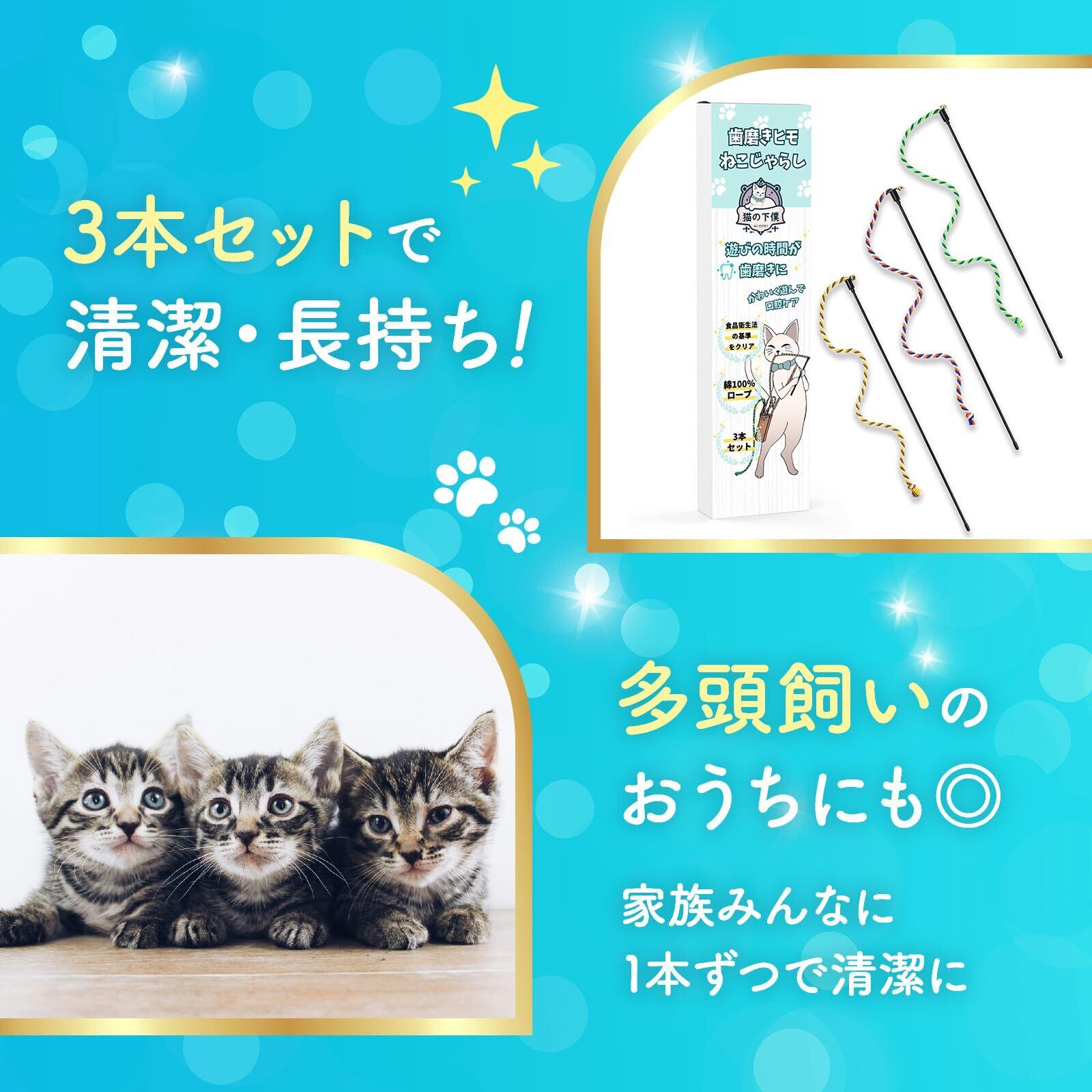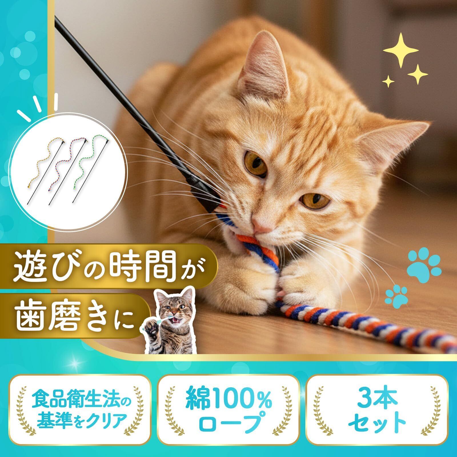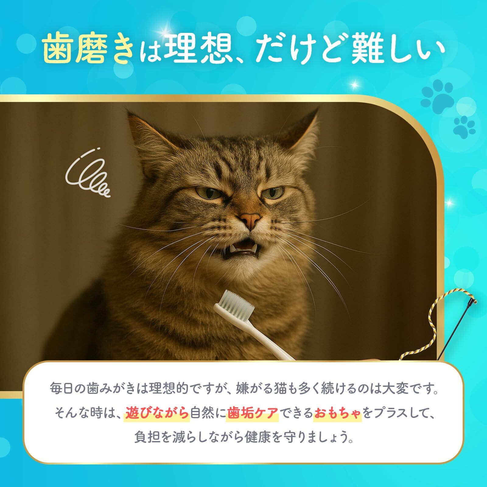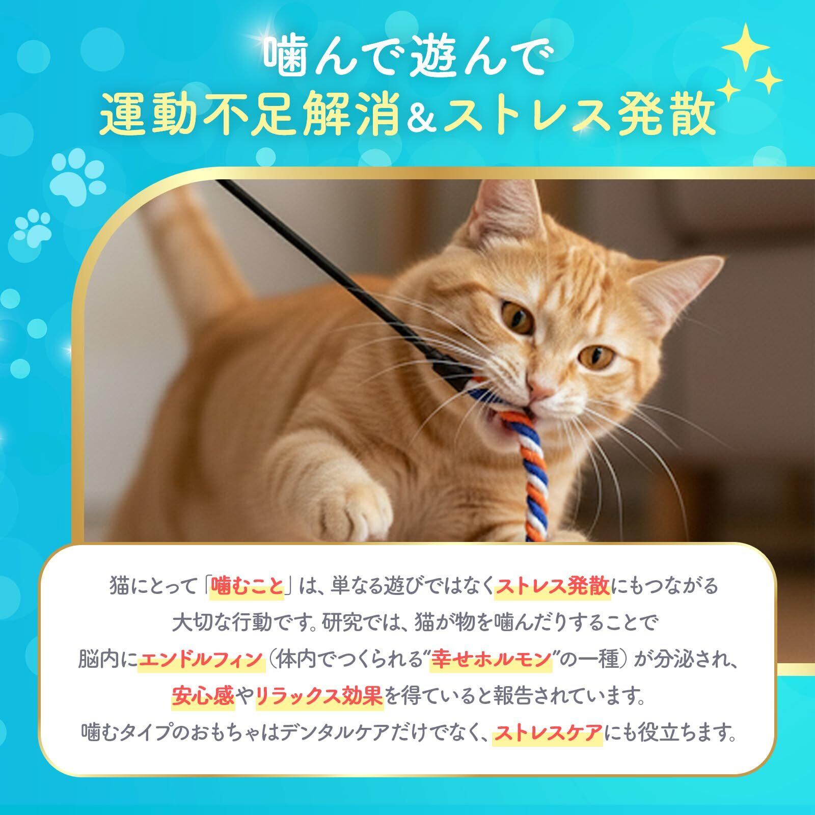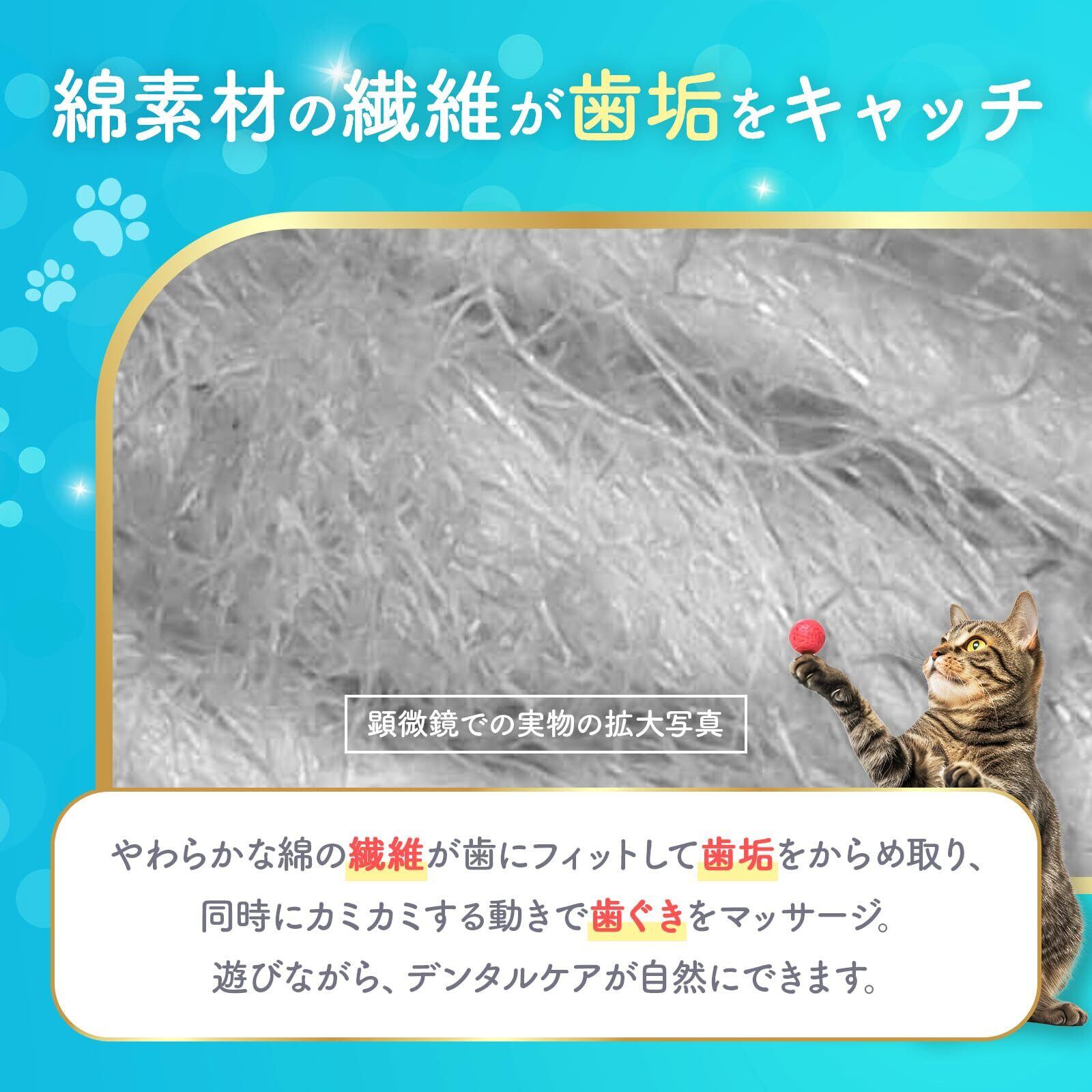 【遊びながらデンタルケア】猫様との日々のおもちゃ遊びの時間を歯磨きに。綿繊維の紐が歯垢をキャッチします。
