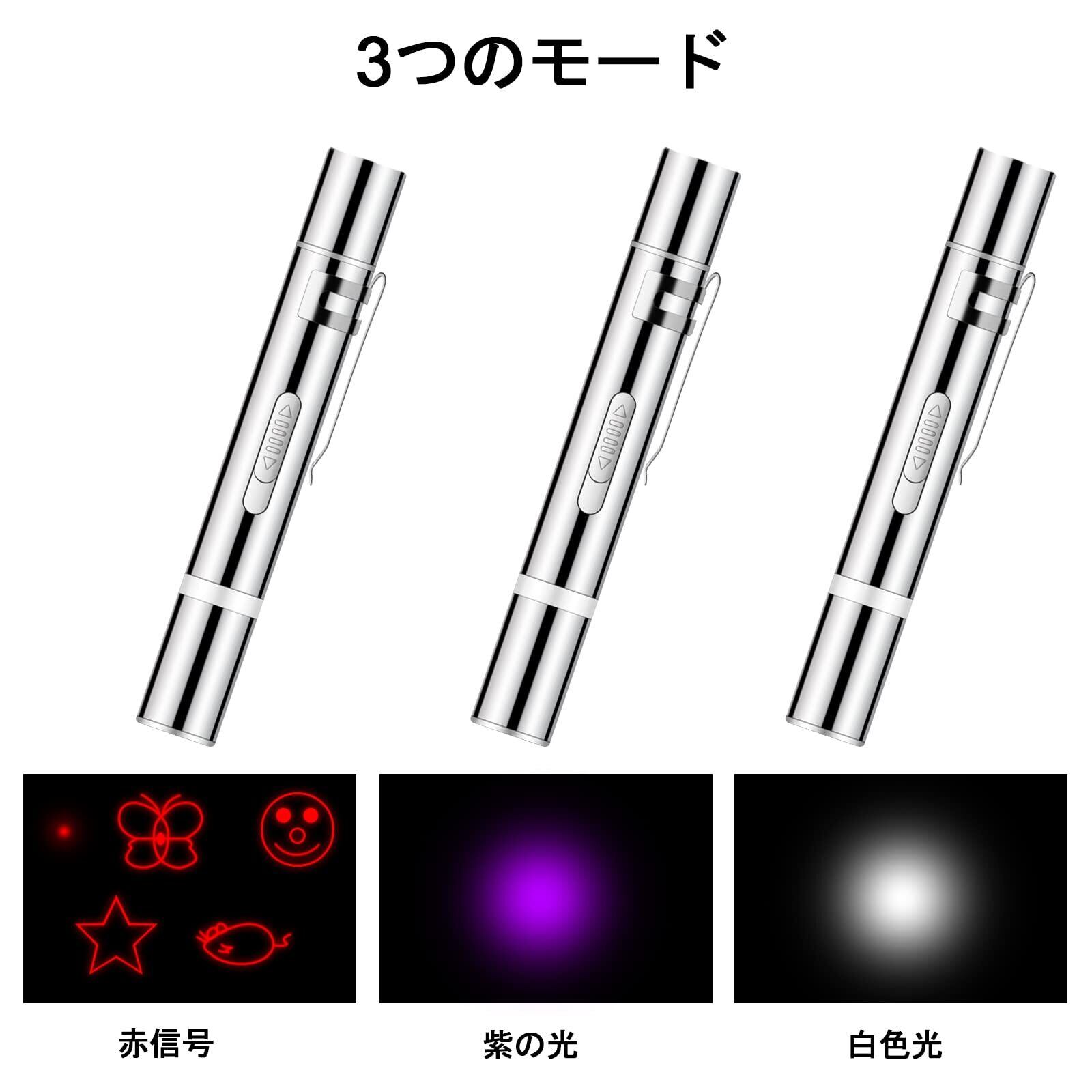 【猫玩具】7種類のポインターが猫ちゃんの好奇心を満たします。猫の興味を更に引き出し、遊び心をくすぐります。