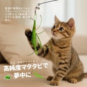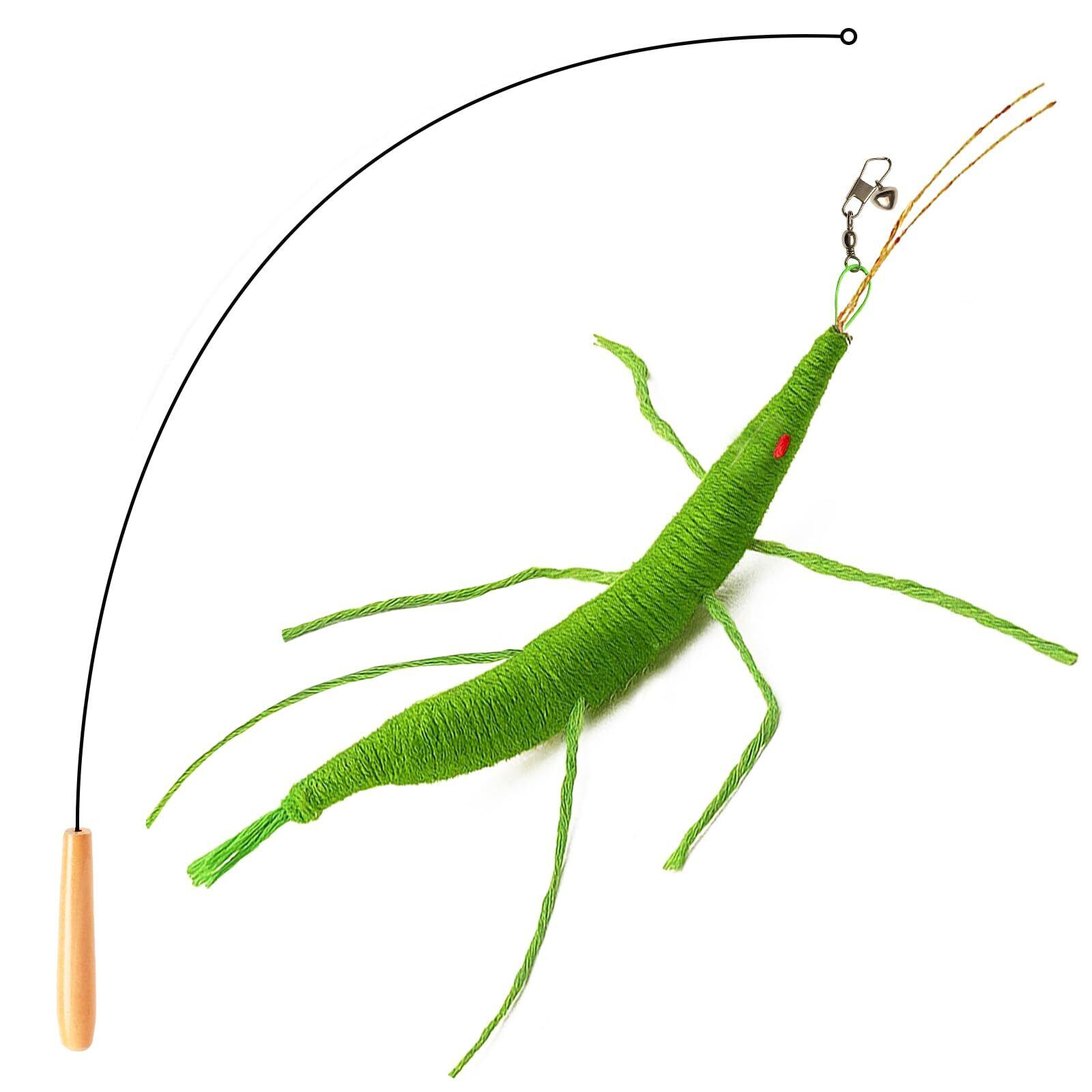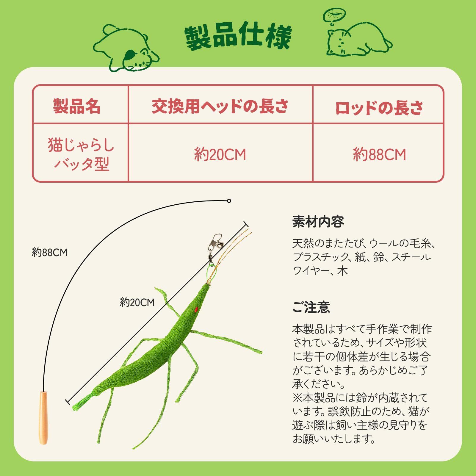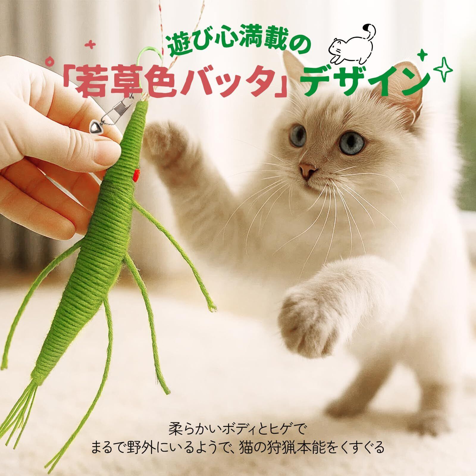 Serviteur 猫 おもちゃ 猫じゃらし バッタ型 マタタビ入り 鈴付き 頑丈 一人遊び 猫玩具 手作り 猫用おもちゃ 昆虫 環境エンリッチメント ストレス解消 運動不足対策 知育 遊び道具 木製ハンドル 緑