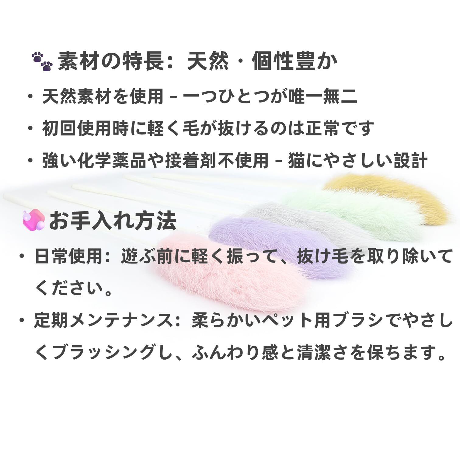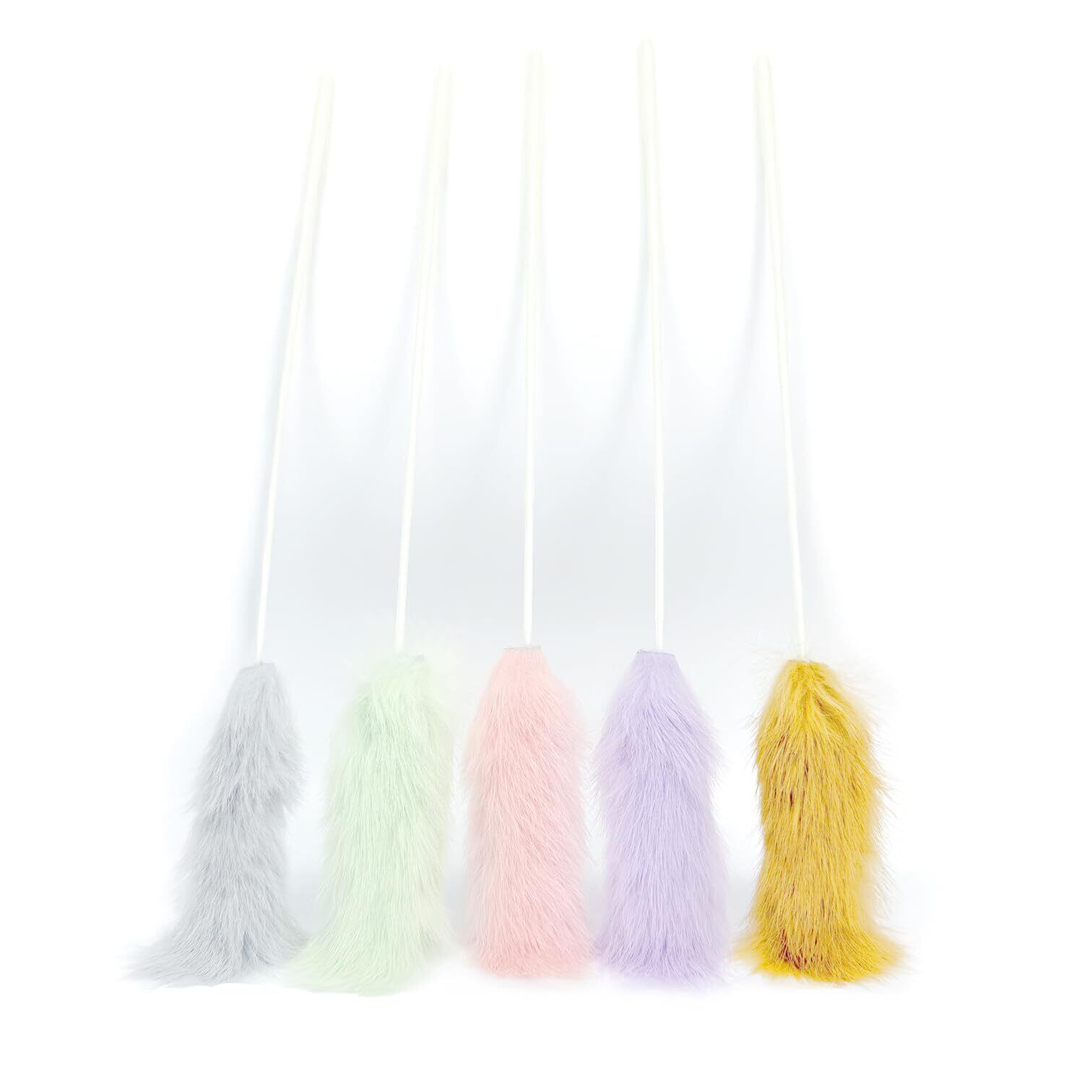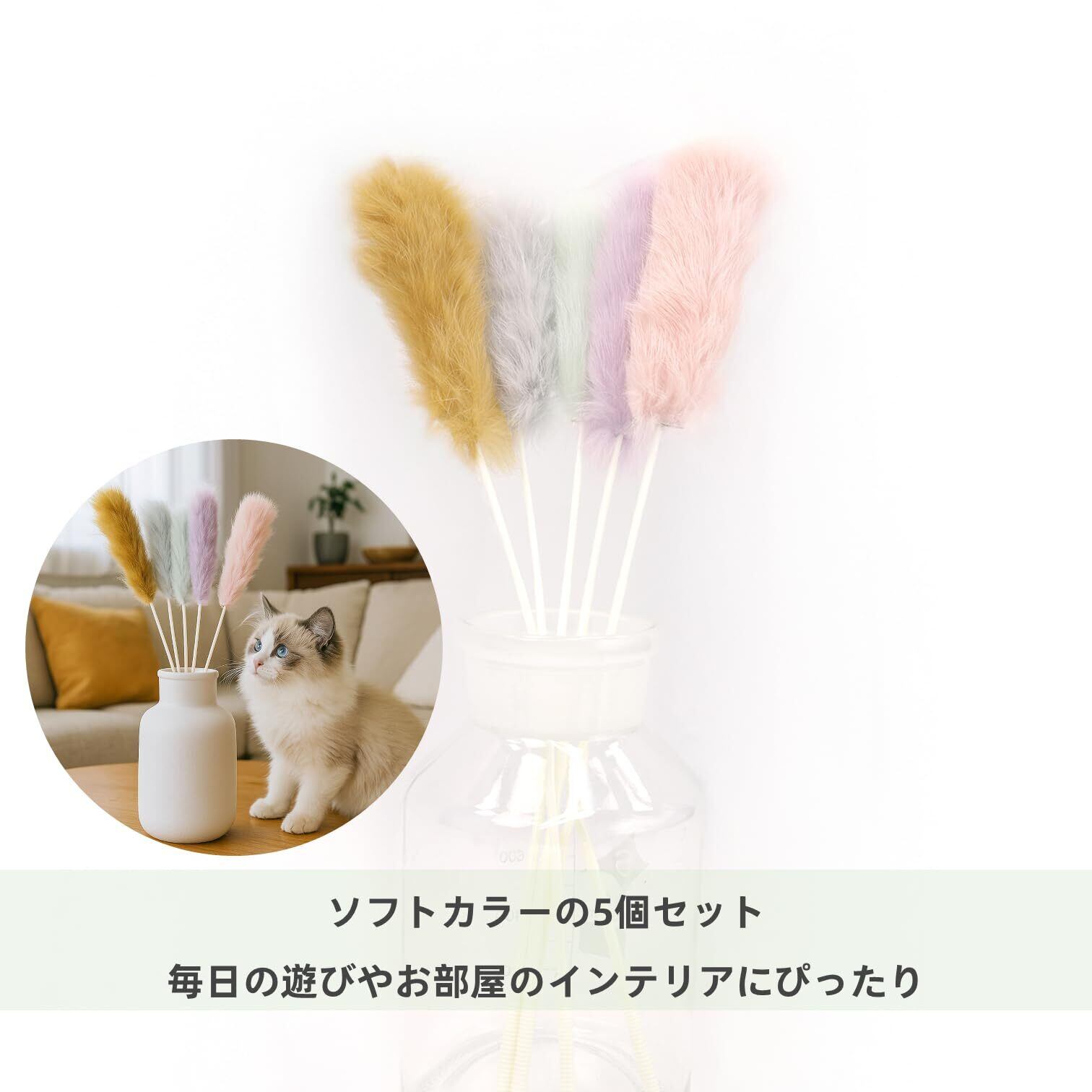 うさぎ毛使用 猫じゃらし 5本セット – 天然素材の猫用おもちゃ 羽根風・ふわふわ猫おもちゃ 猫の狩猟本能を刺激 室内猫に最適 カラフルでインテリアにも